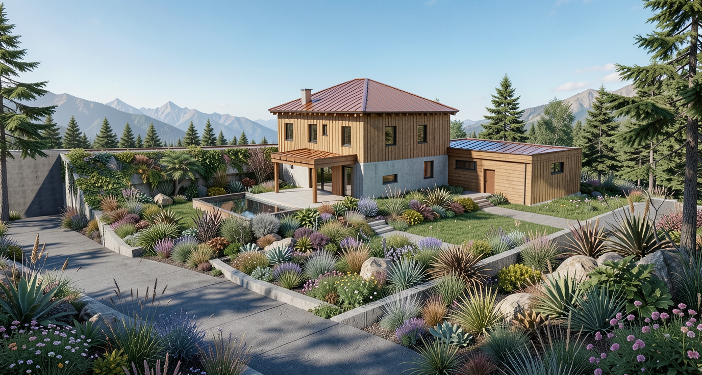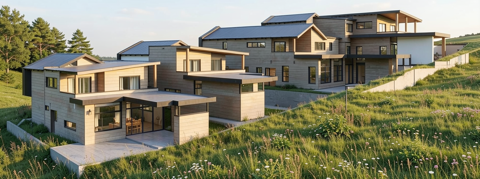 add real effect to make it look like real photo real color real glass reflections contrast real trees reduce sun effect make look like a day view render real grass with white flowers