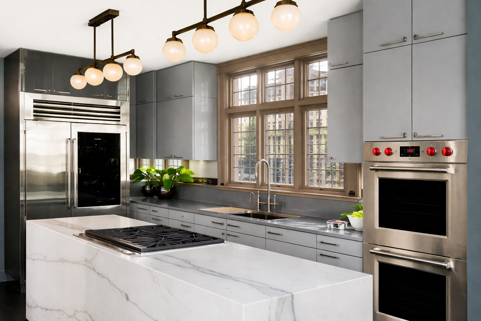 change cabinet over refrigerator to be single brushed stainless steel door