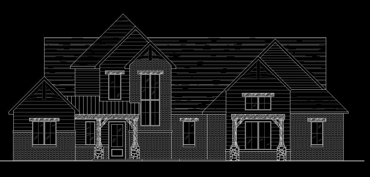 classical exterior shot farm house style follow the elevation create a stone wainscot along the home under the windows change the doors to the right to windows architecture