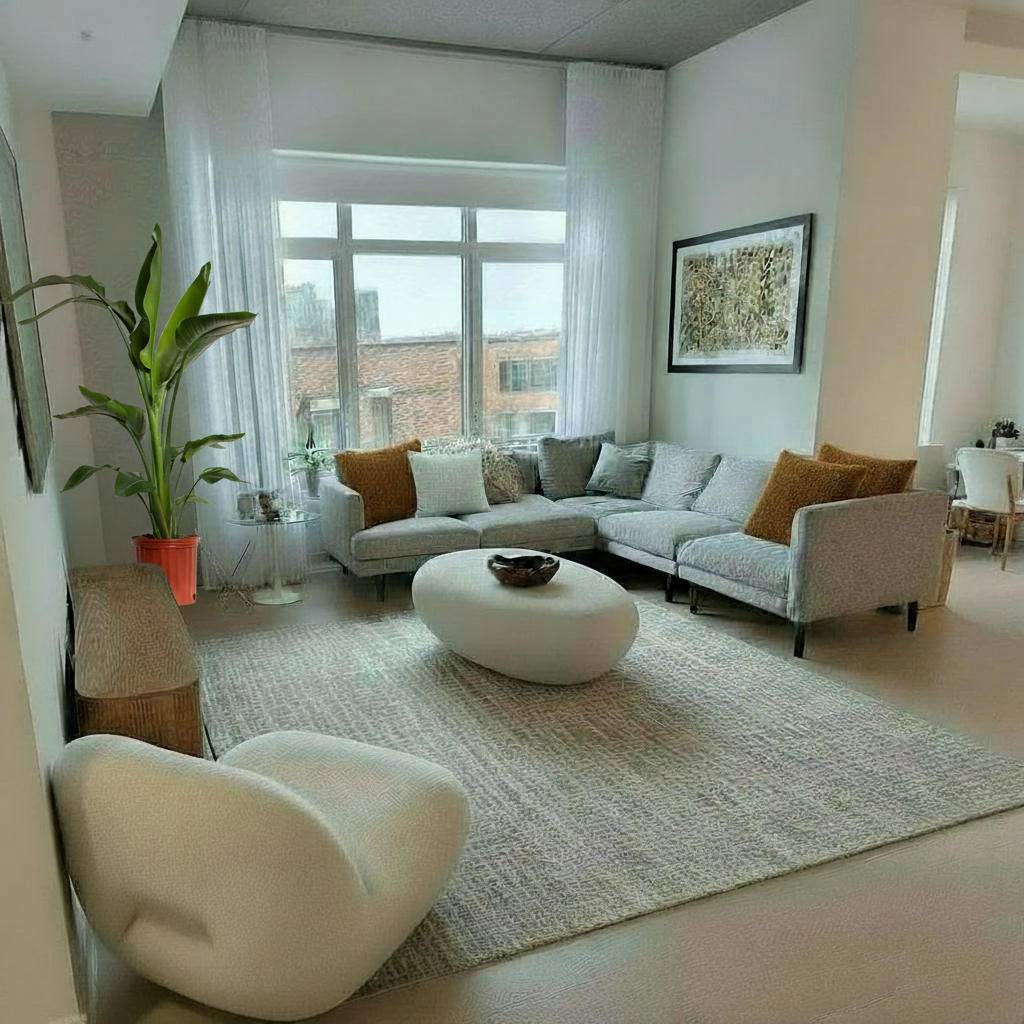 keep the original photo exactly as it is preserving composition colors lighting and perspective only make the following changes make plant look more realistic and integrated in photo and change plant pot to black cylinder