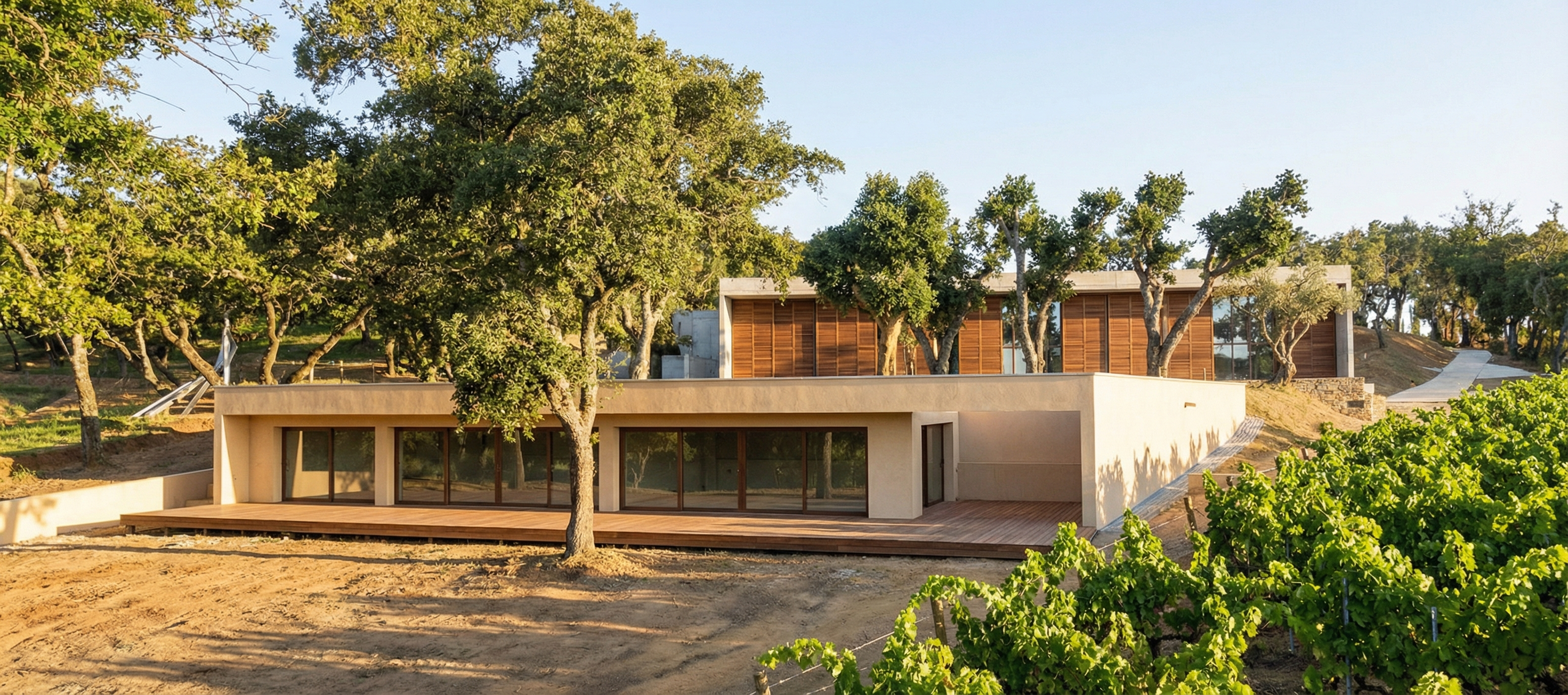 the only balcony on the left above the stairs has a balcony railing