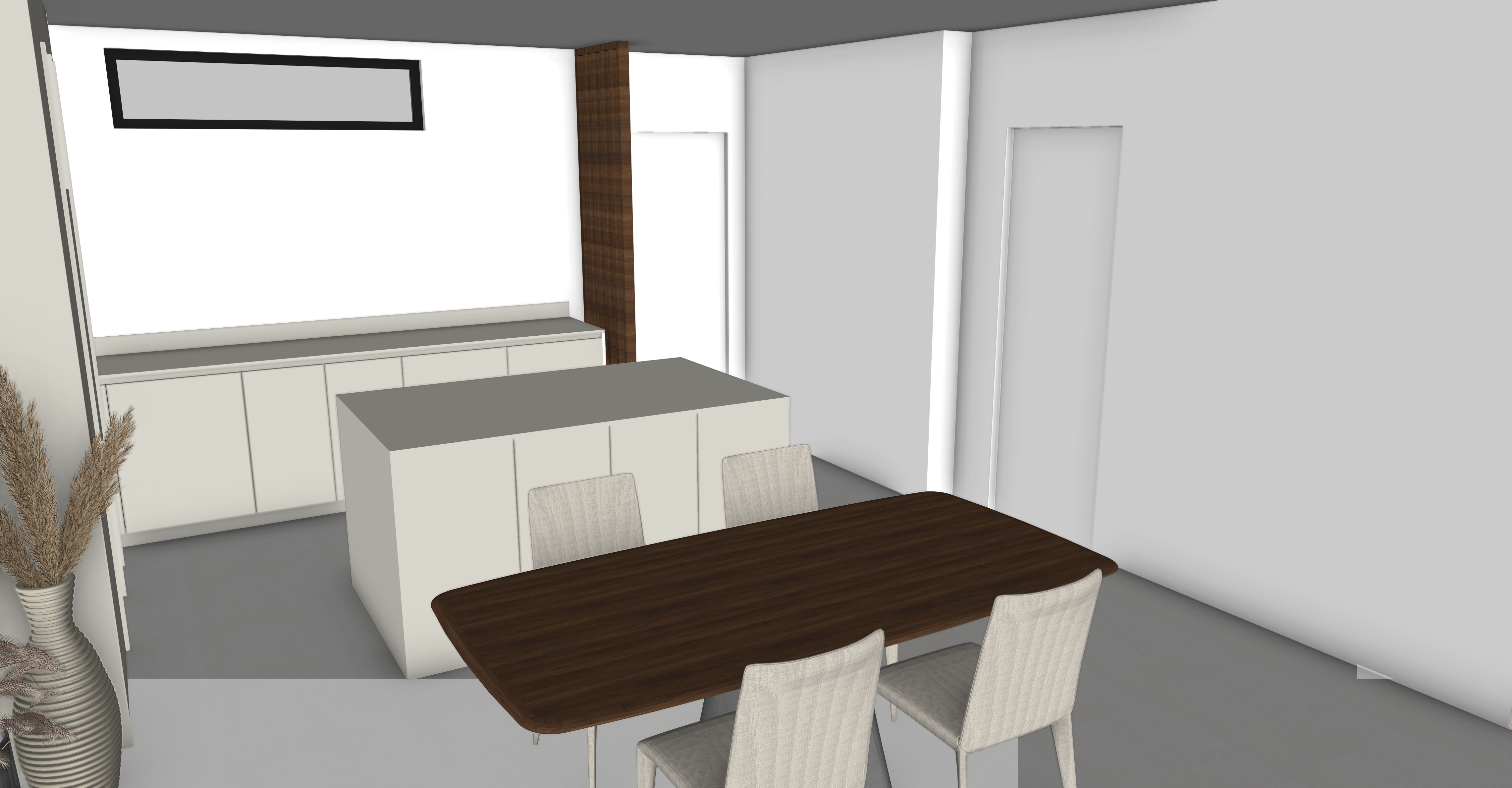 witte voordeur dampkamp inox boven kookeiland