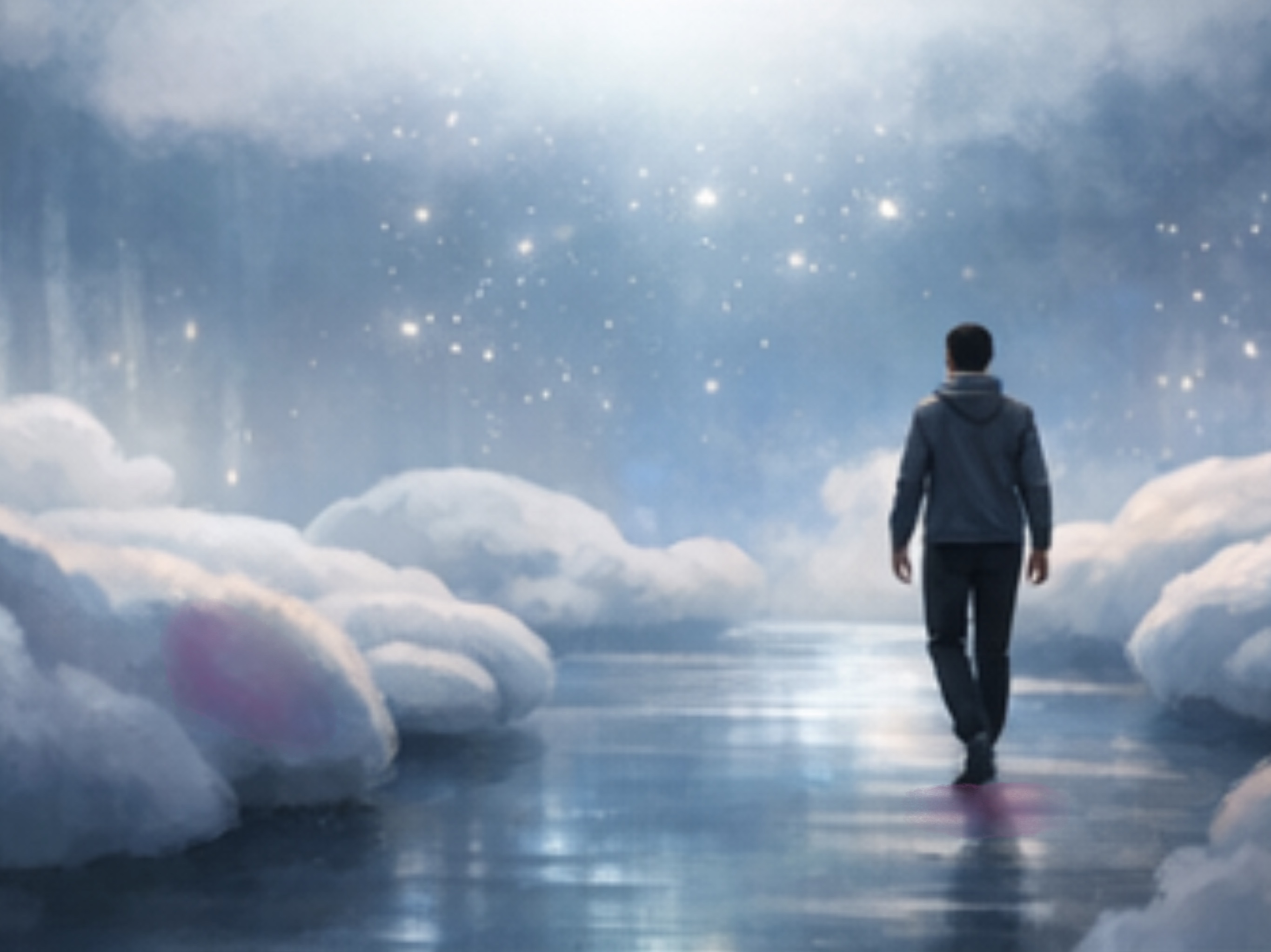 exterior shot make the floor like this and make the sculptural clouds look more cloudy
