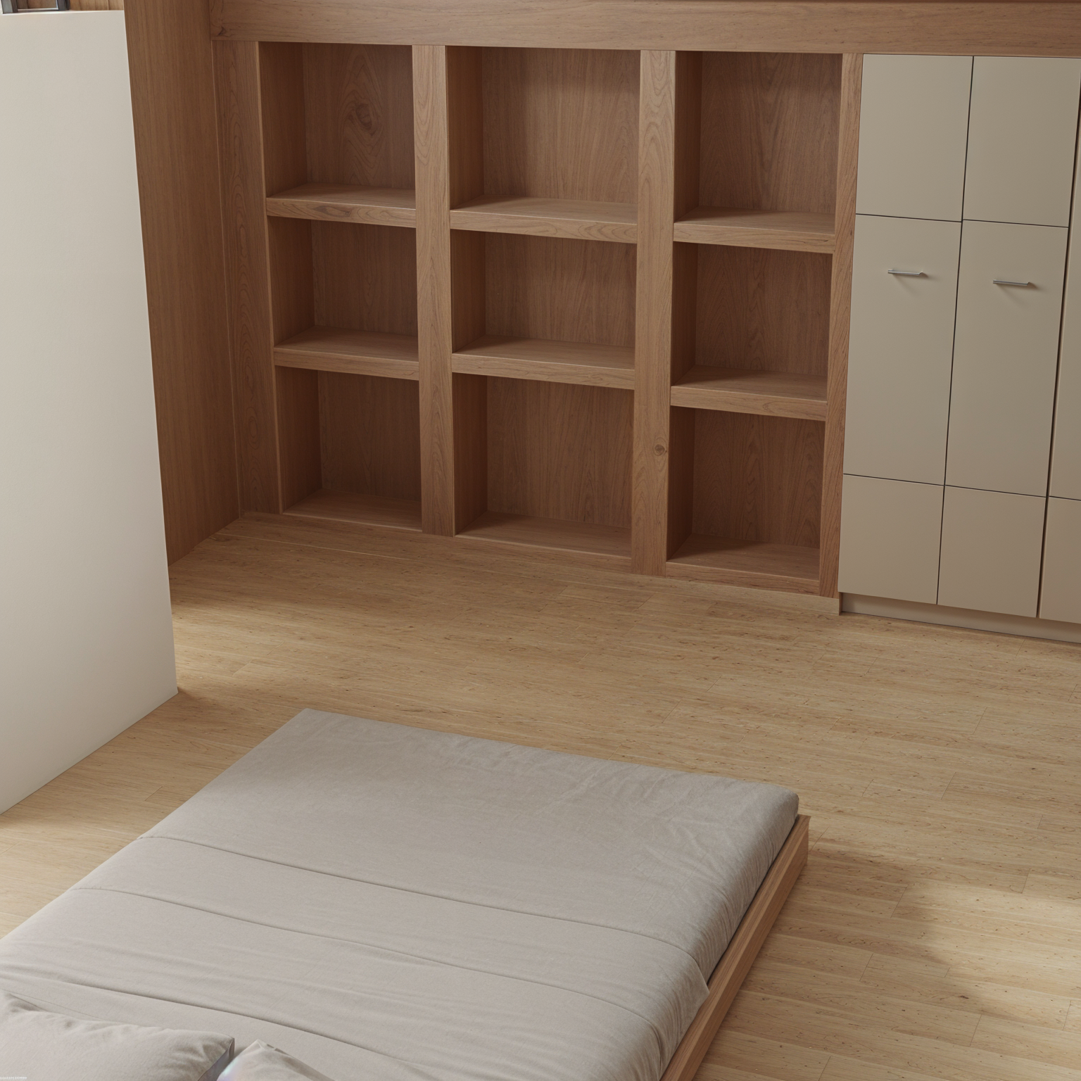 the mint wall panel make a mirror but the wood furniture remains the same