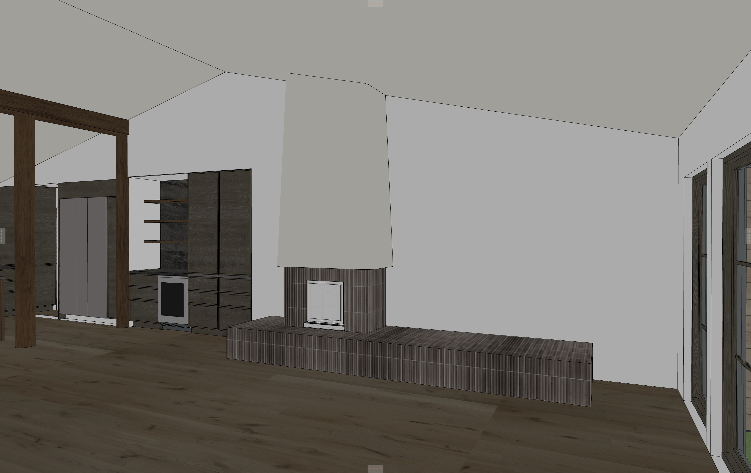 enhanced interior lighitng drywall curved chimney light wood cabinetry tiled fireplace hearth and surround