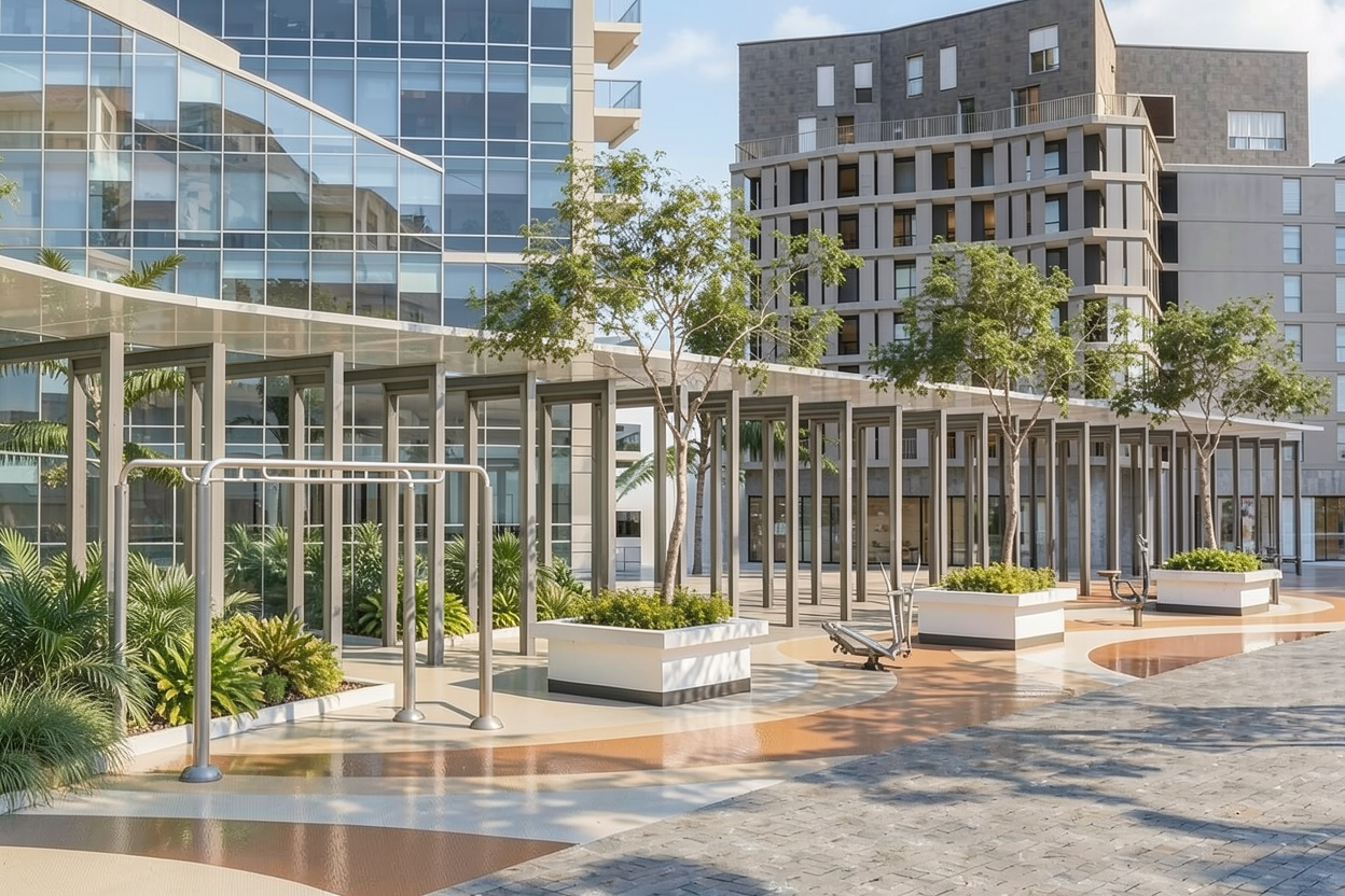 enhance overall rendering make trees realistic add blue sky with some clouds