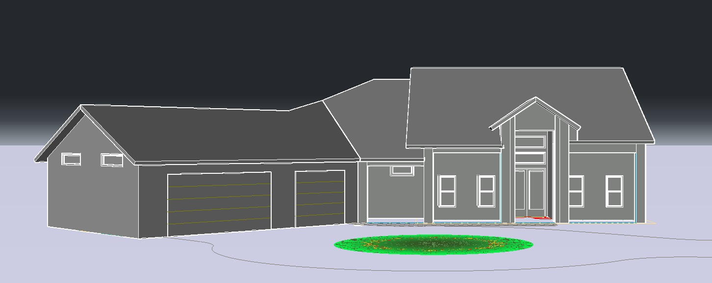 modern exterior shot a modern farmhouse at 6pm with lights on white plank walls and with metal dark gray roofing and a 3 car garage on the left white hardi plank horizontal exterior walls surrounded by lush greenery in florida setting plain concrete porte cochere surround it with palm trees and a dawn setup with lights lit up architecture