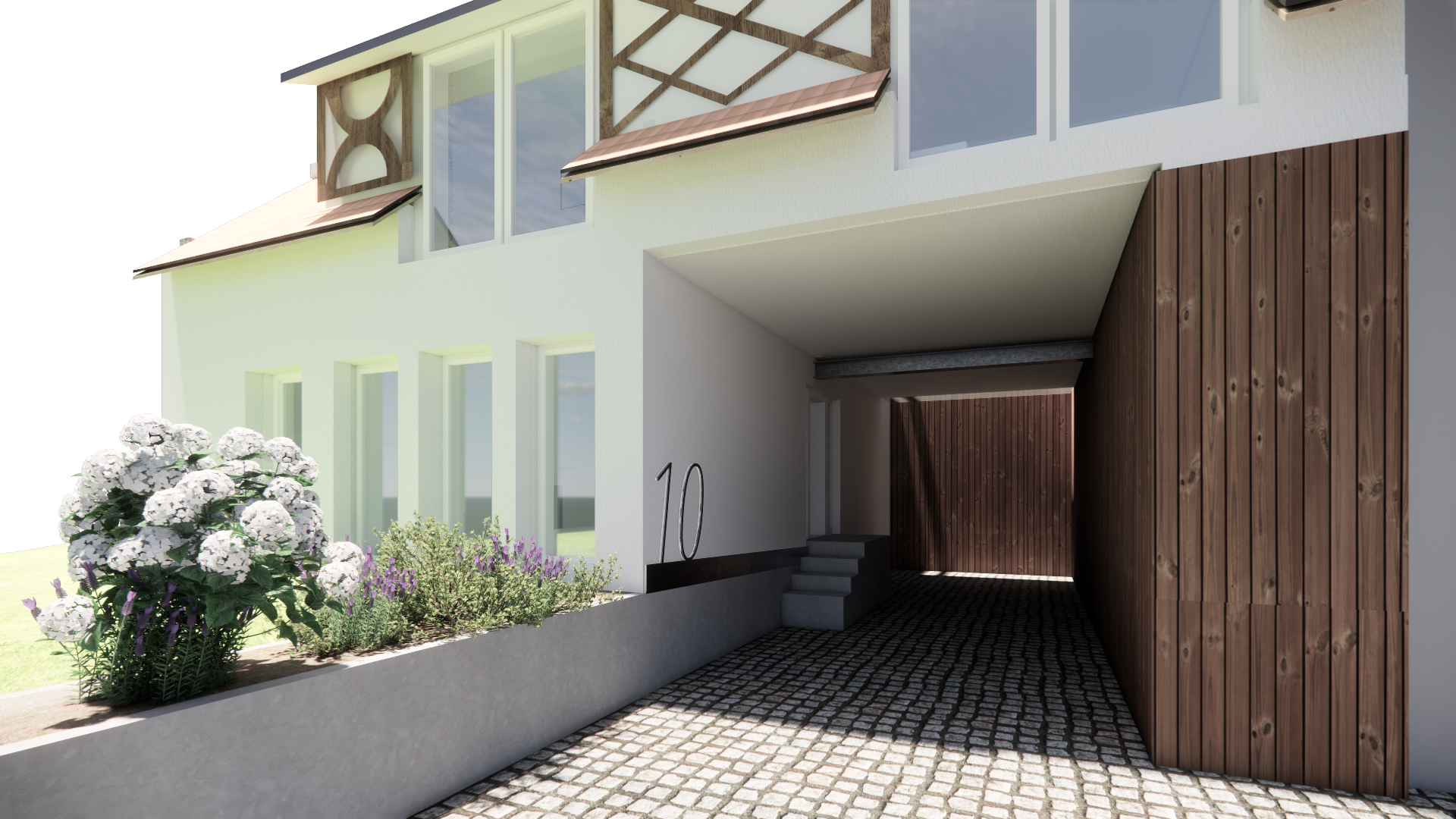 transform the provided 3d raw model into a highly photorealistic visualization of a traditional german half timbered house fachwerkhaus preserve the exact geometry proportions structure and architectural details of the original model do not modify add remove or reinterpret any architectural elements enhance realism through authentic timber frame textures aged wood visible grain slight weathering realistic plaster infill lime plaster subtle imperfections natural color variation high quality material definition with accurate roughness and reflectivity realistic window glass with reflections and slight transparency detailed roof materials e g clay tiles or slate with natural variation subtle imperfections and aging for authenticity no stylization lighting natural daylight soft shadows global illumination physically accurate lighting behavior context minimal unobtrusive surroundings neutral ground soft background no additional architectural elements or changes rendering style photorealistic high resolution physically based rendering pbr balanced contrast natural colors no artistic filters important architecture and geometry must remain exactly as in the input model no design changes under any circumstances plain construction joints no lighting features at transitions