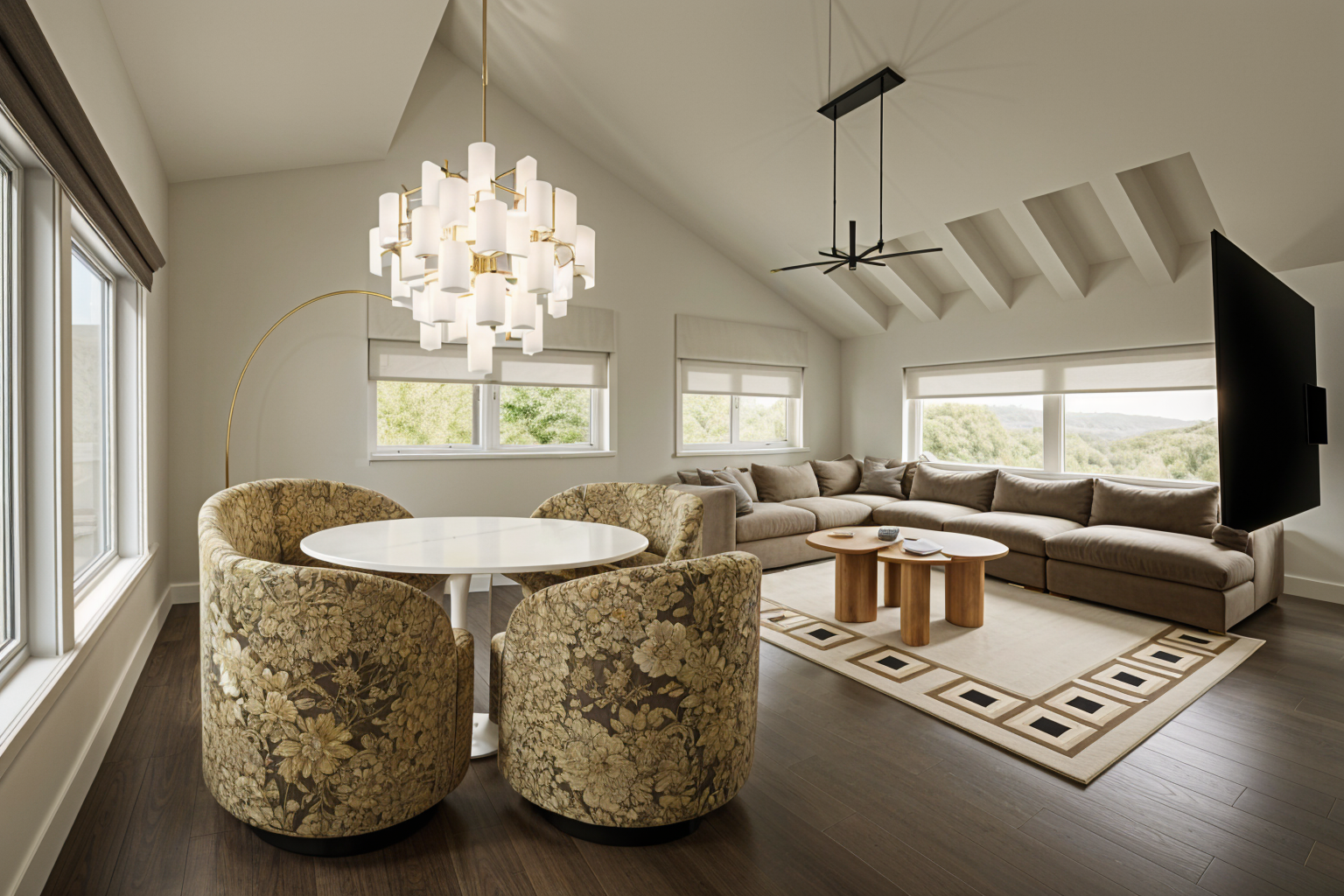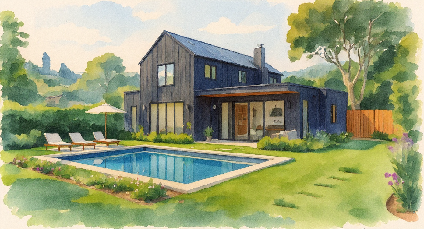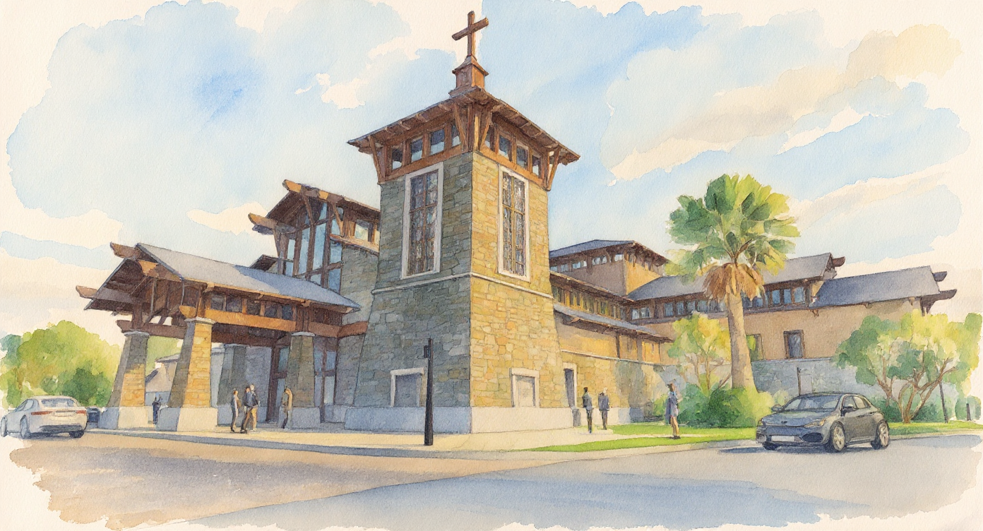 exterior shot add lush landscaping maintain detail of architecture add people architecture