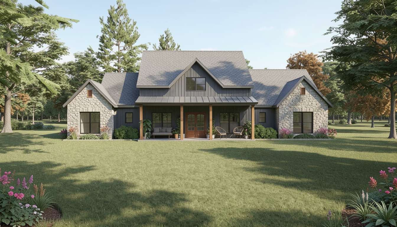make this render realisitc and enhance it keep materials the same cream buff common brick where shown dark grey zinc cladding where shown solider cream buff common brick where shown cream sandstone widow cills and surrounds where shown grey modern slate roof tiles dark grey bricks where shown inbetween windows