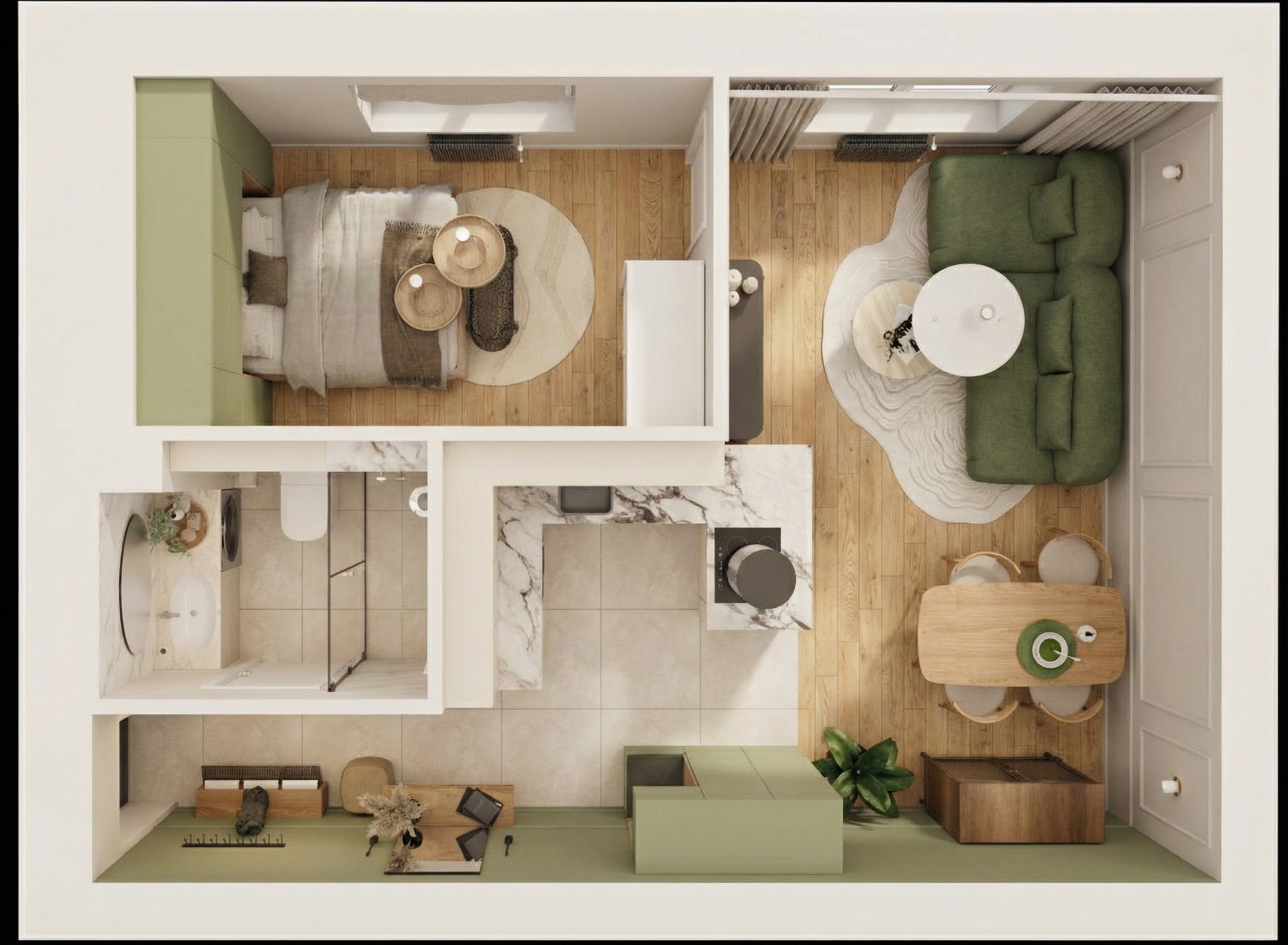 respecter totalement la g om trie et les couleurs de l image d origine les bandes led du plafond sont clair es le sol a deux couleur de bois diff rent respecter comme le mod le le plus fonc en bande centrale est un ch ne moyen les montants des cloisons sont blanc les trois cloisons pleines sont gris clair mat