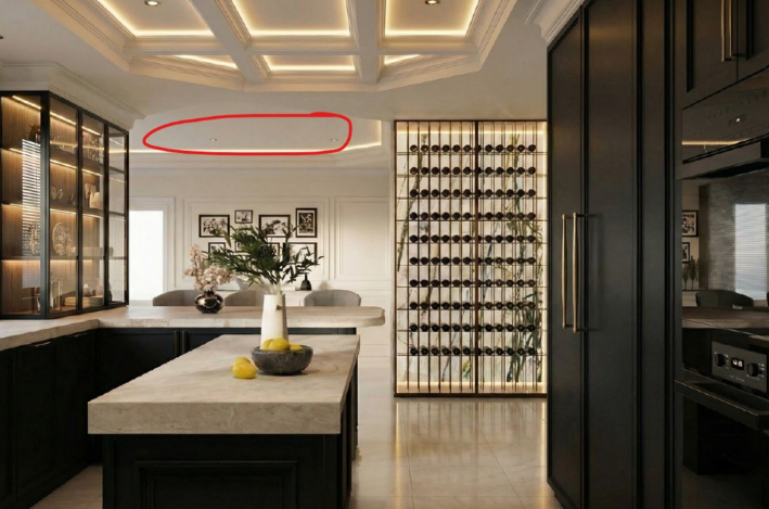 add a coffered ceiling design in the back area