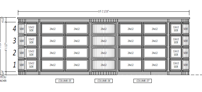 columbarium island this plan is glass front columbarium niches the bottom and top trim are green granite the border between niches are bronze and the interior are soft bronze color the are retro lighted from the interior