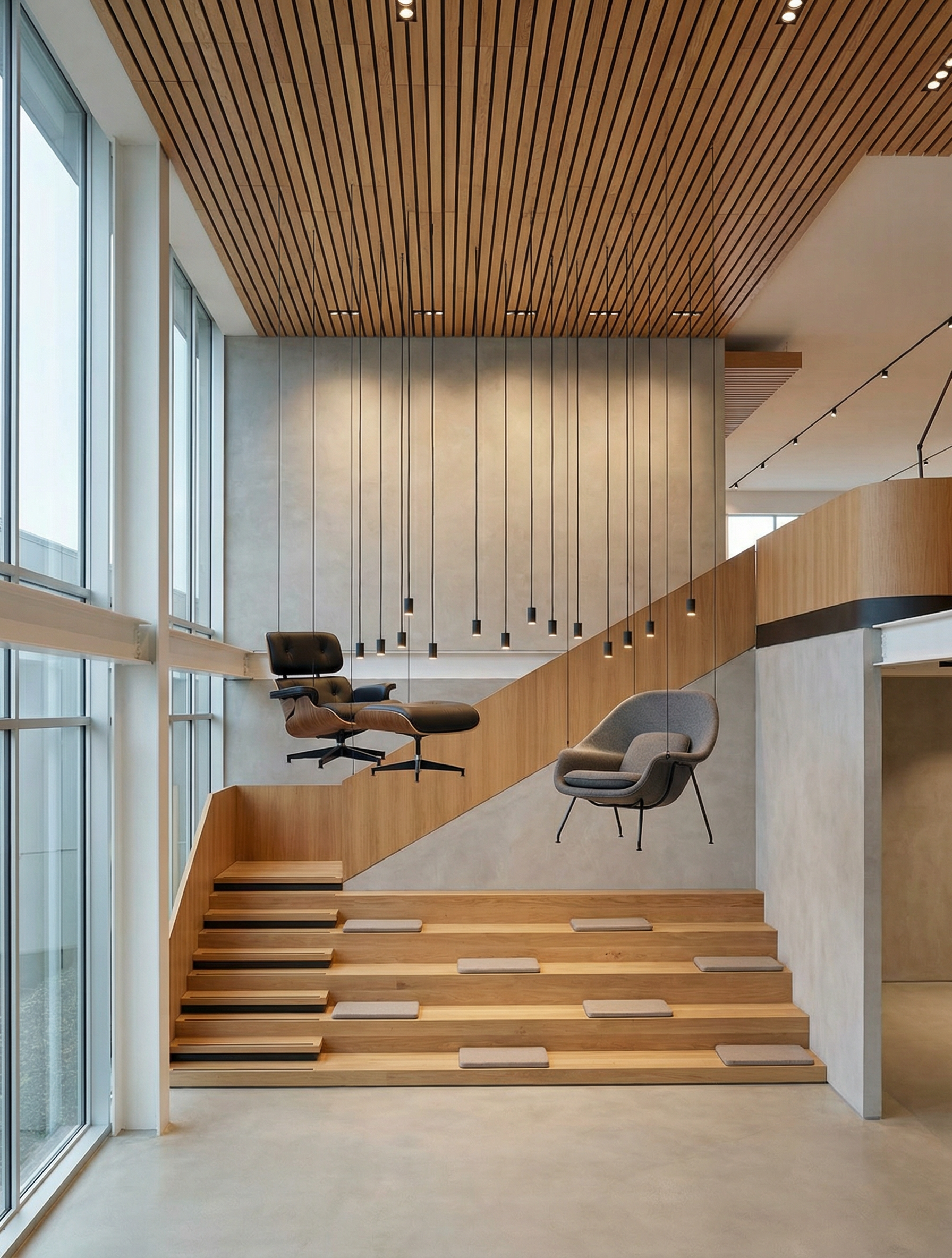 this is a wall in a hallway mudroom with beautiful natural stained knotty walnut cabinets there is a nice modern 2 step crown molding along the top of the cabinets all the handles are a brushed brass the open spaces to the right have a coat hanger in each the floor is a beautiful hard wood there is lots of natural light coming from the left out of frame