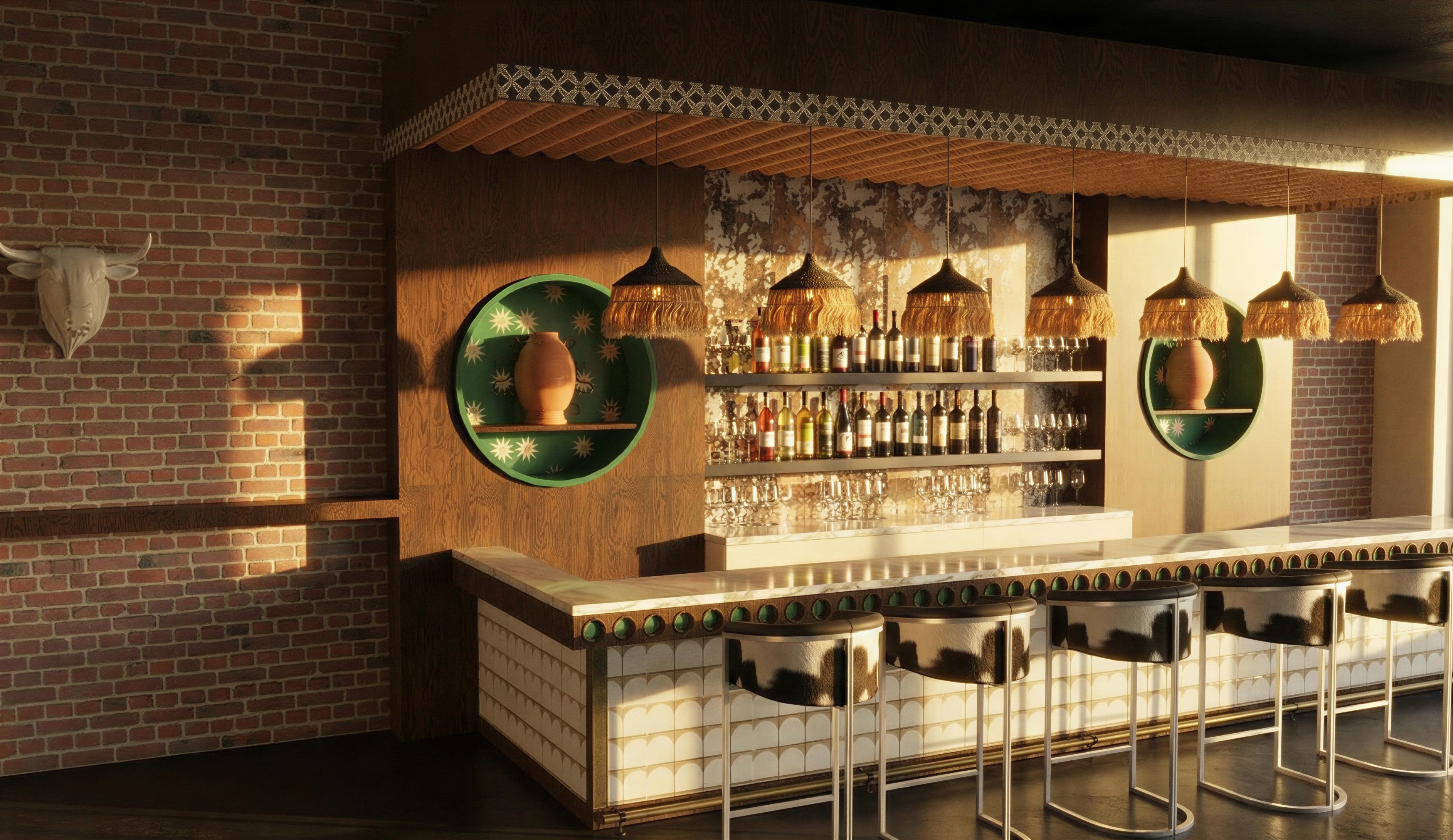 change the tile on the front of the bar to a deep maroon tile and change nothing else