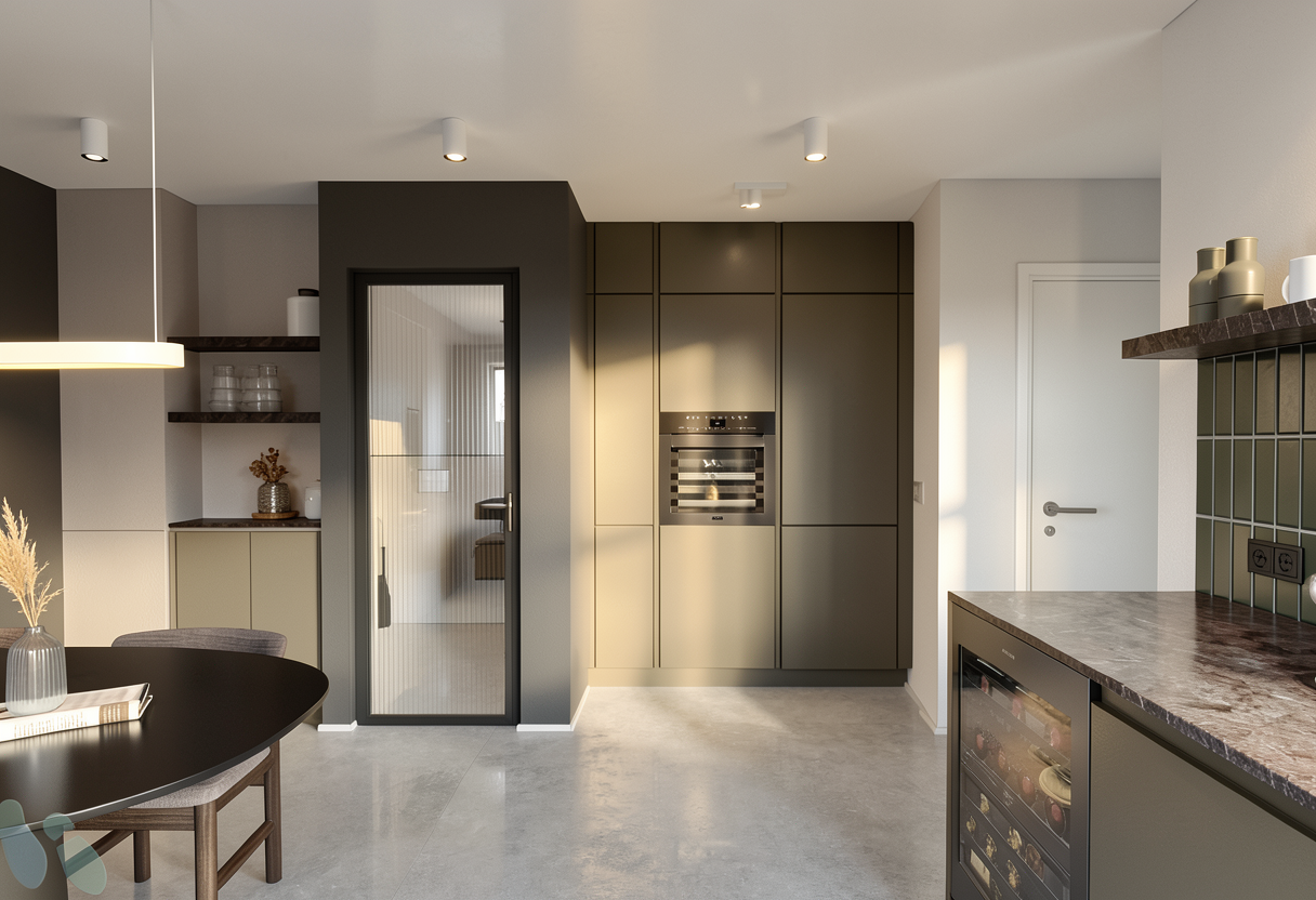 enhance this image to ultra photorealistic quality preserve the exact geometry proportions layout materials colors textures and all design details exactly as shown do not add remove redesign restyle or reinterpret anything do not change materials colors lighting direction furniture dimensions or composition no new objects no decorative additions no artistic reinterpretation only improve realistic lighting natural shadows material realism true to life surface rendering reflections depth and camera realism high end architectural photography quality the final image must be a 1 1 faithful photorealistic version of the original design make the floor a really tiny tiny tiny bit darker the ceiling can be plastered white
