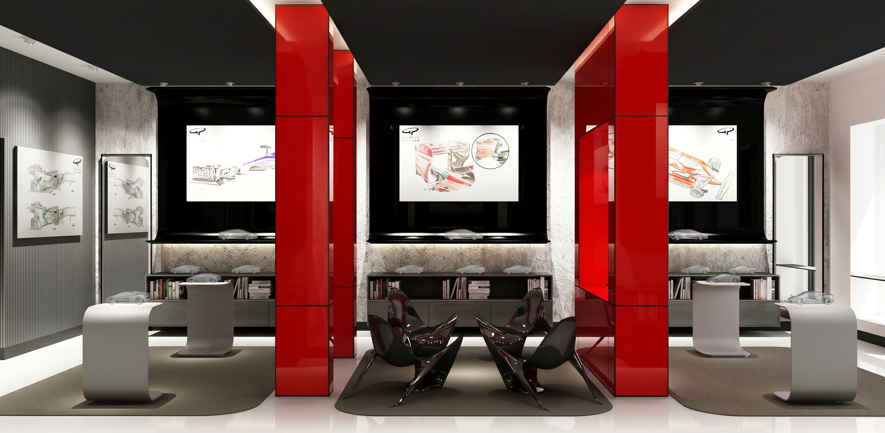 render a vibrant boutique retail space interior with wood tones and trendy merchandise