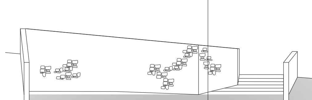 the wall to the left and the right are made of stone there is a ramp between them put trees on the background and nothin else architecture