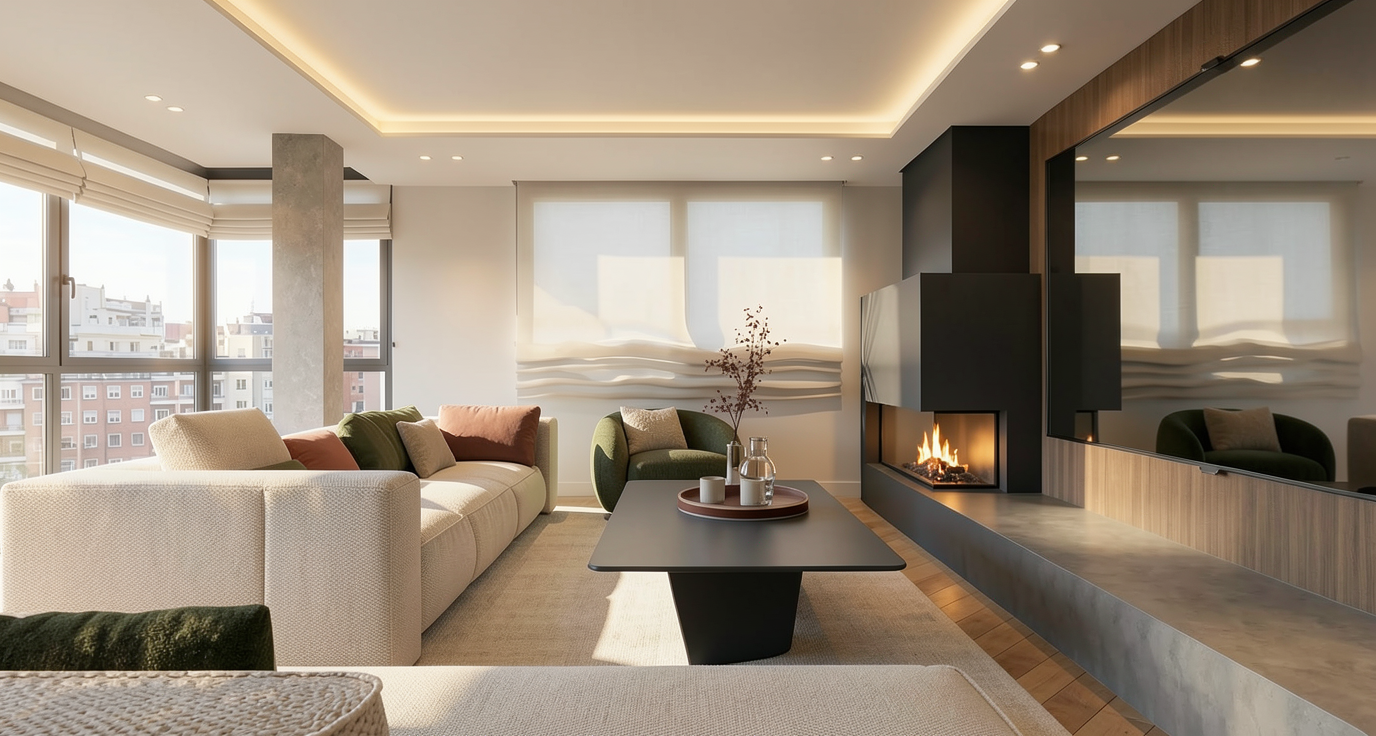 contemporary exterior shot create a stunning aerial rendering of a small modern cityscape the buildings are sleek and minimalist in shades of white and light grey capturing sunlight and casting gentle shadows the roads a dark charcoal grey weave through the landscape bordered by rich earthy brown terrain the atmosphere is serene and bright with a clear blue sky and soft natural lighting illuminating the scene lush green trees dot the landscape adding vibrant pops of color for a harmonious balance the atmosphere is serene and slightly overcast with soft diffused lighting creating a cozy and inviting ambiance the atmosphere should be bright and clear evoking a sense of tranquility and balance this is a newly introduced road designed to establish a clear internal access structure within the development the area in front of the road is designated as a coastal restoration zone pls emphasis strategic roads the right part of green space is park surrouned area is land and residential area as well residential building is 4 storey structure architecture