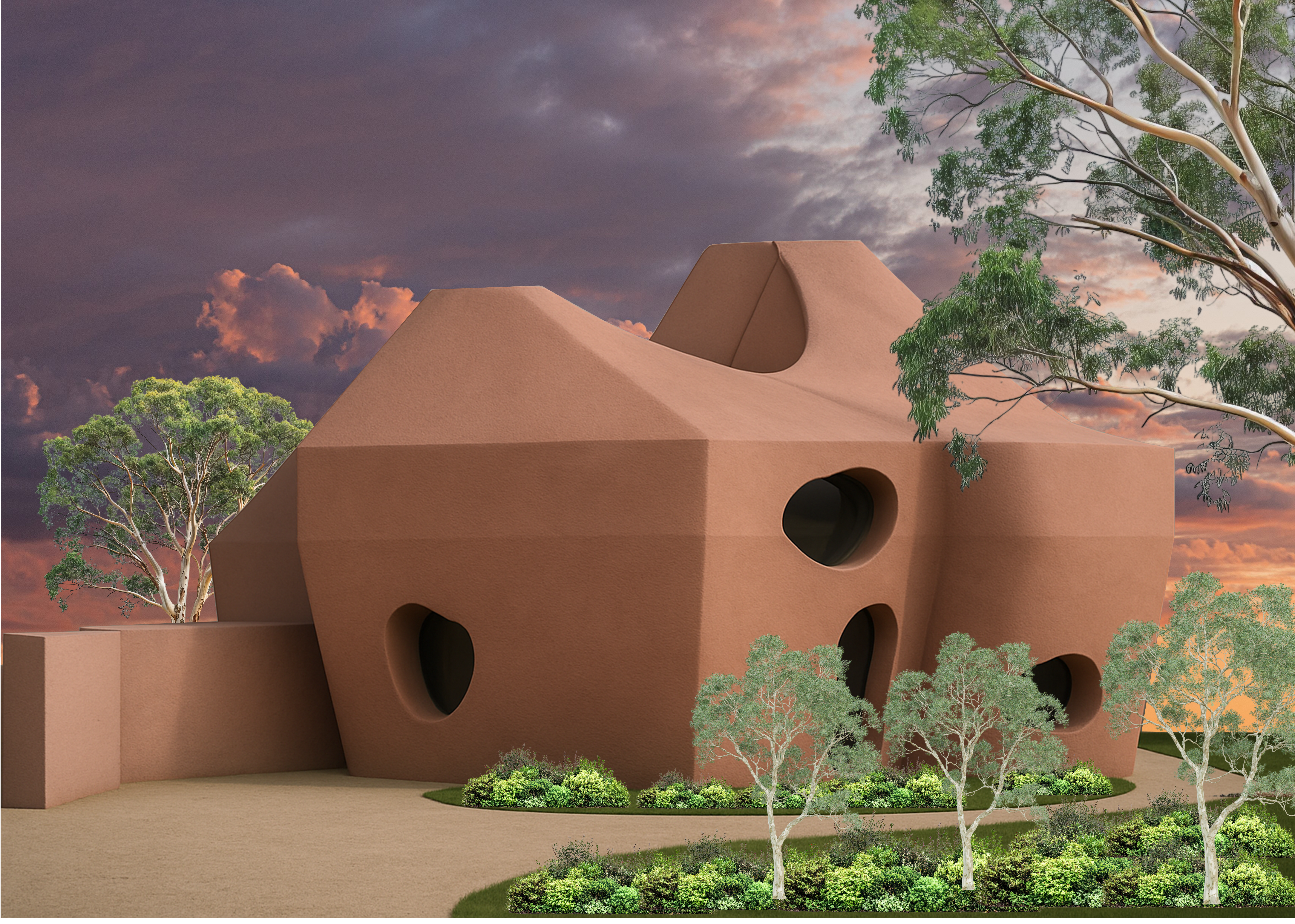 exterior shot add some light from the sunset coming from the back make the image more realistic and add more vegitation around the trees in the front
