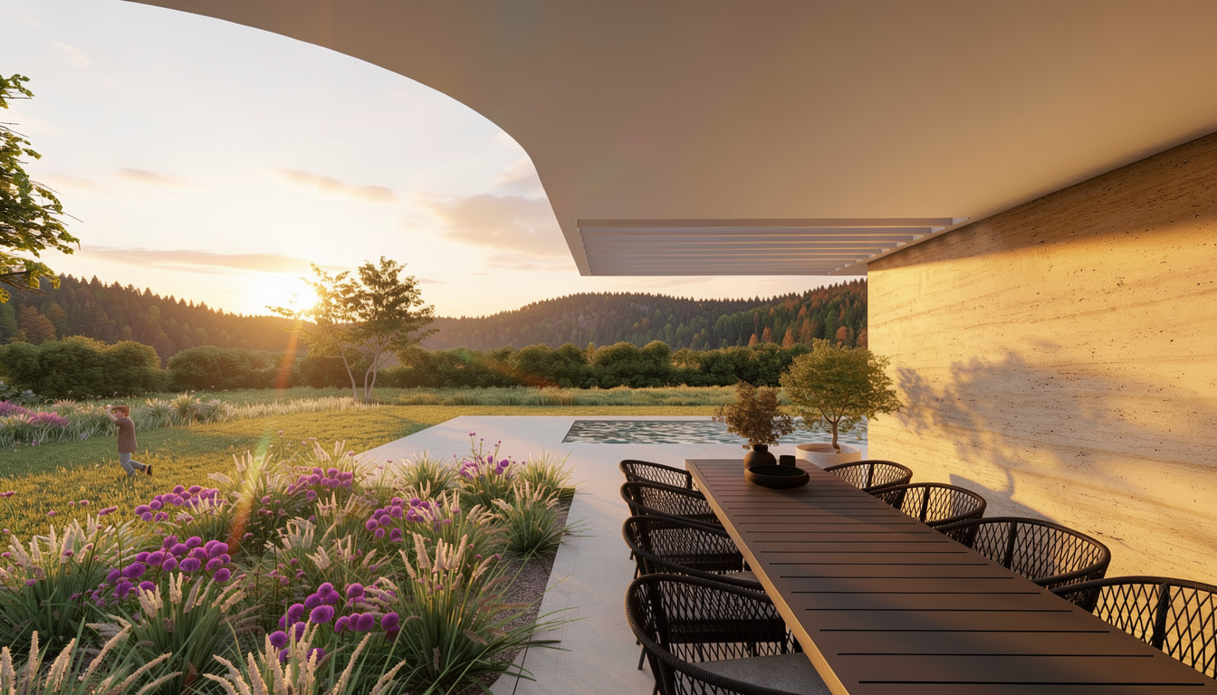 use the provided image as strict base reference preserve the original architecture composition camera position framing proportions and scene layout exactly as they are do not redesign reinterpret or add remove elements objective enhance the image to achieve a high end architectural editorial look refined poetic visually rich and photorealistic without altering the original design materials textures refinement improve realism of all materials stone plaster metal glass pavement add subtle micro texture and natural imperfections introduce slight tonal variation to avoid flat or repetitive surfaces maintain material authenticity no stylization no exaggeration avoid overly sharp noisy or artificial textures light atmosphere strict control preserve the original light direction and logic exactly do not change sun position or shadow orientation refine lighting to be more natural and photographic softer highlights balanced contrast gentle shadow transitions introduce a subtle atmospheric depth very light haze if needed avoid dramatic cinematic or artificial lighting effects reflections surfaces make reflections more physically accurate and slightly softer avoid mirror like or overly perfect reflections ensure correct roughness on all materials color grading apply a subtle editorial color grading slight desaturation for realism maintain a natural warm mediterranean tone if applicable avoid hdr look or excessive contrast vegetation context slightly reduce artificial appearance of vegetation add natural variation in tones and density keep everything controlled and not overgrown overall style architectural digest high end european editorial photography clean calm intentional composition poetic but restrained photorealistic not cgi looking critical constraints very important no change in architecture no change in composition no change in camera or framing no change in proportions no change in layout no added or removed elements no change in light direction no exaggerated textures no dramatic effects