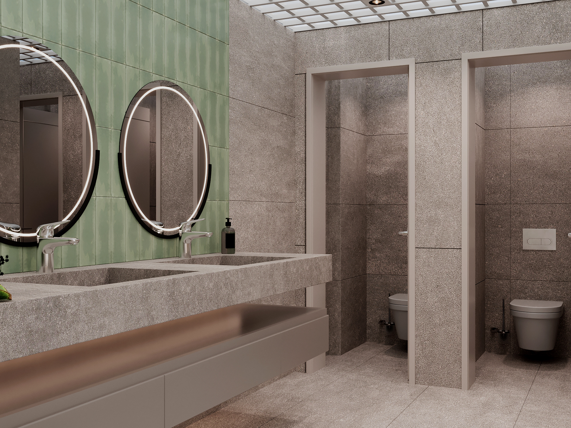 on the wall where only green ceramic is visible make the gradient green color appear as a single row of the same tone of green