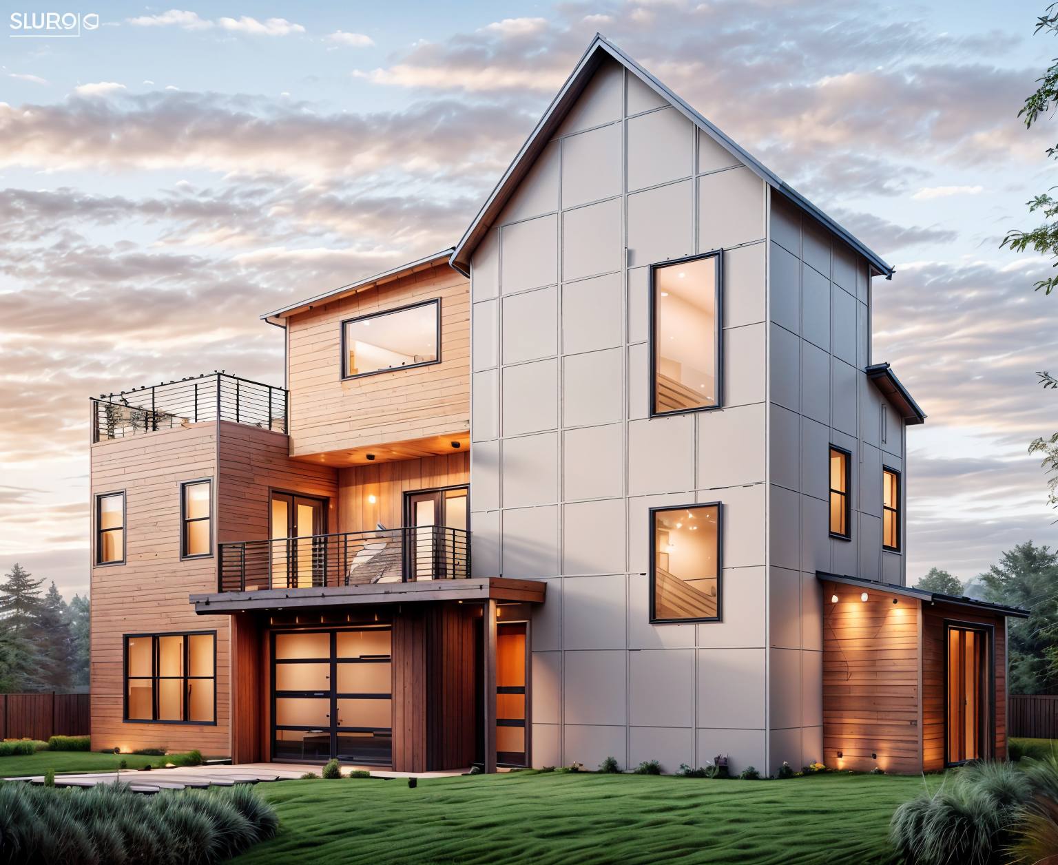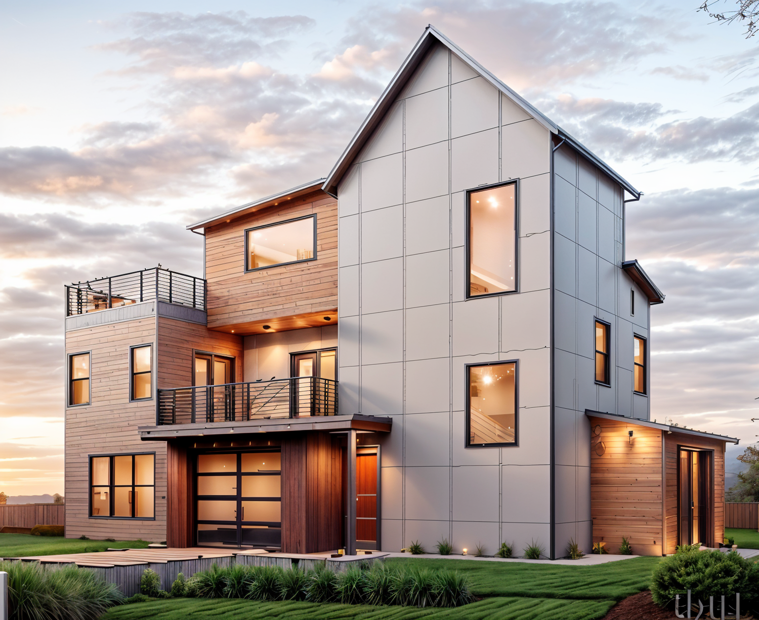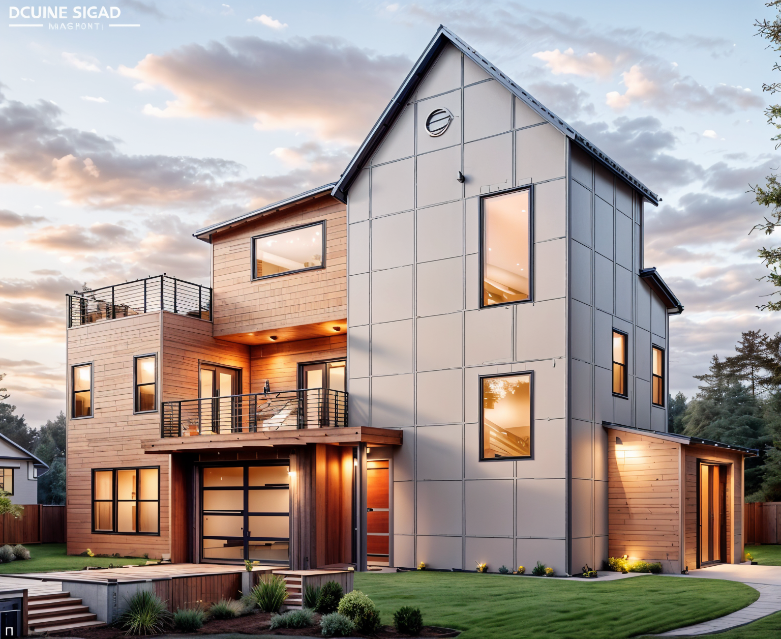 exterior shot sunset background neighborhood landscaping