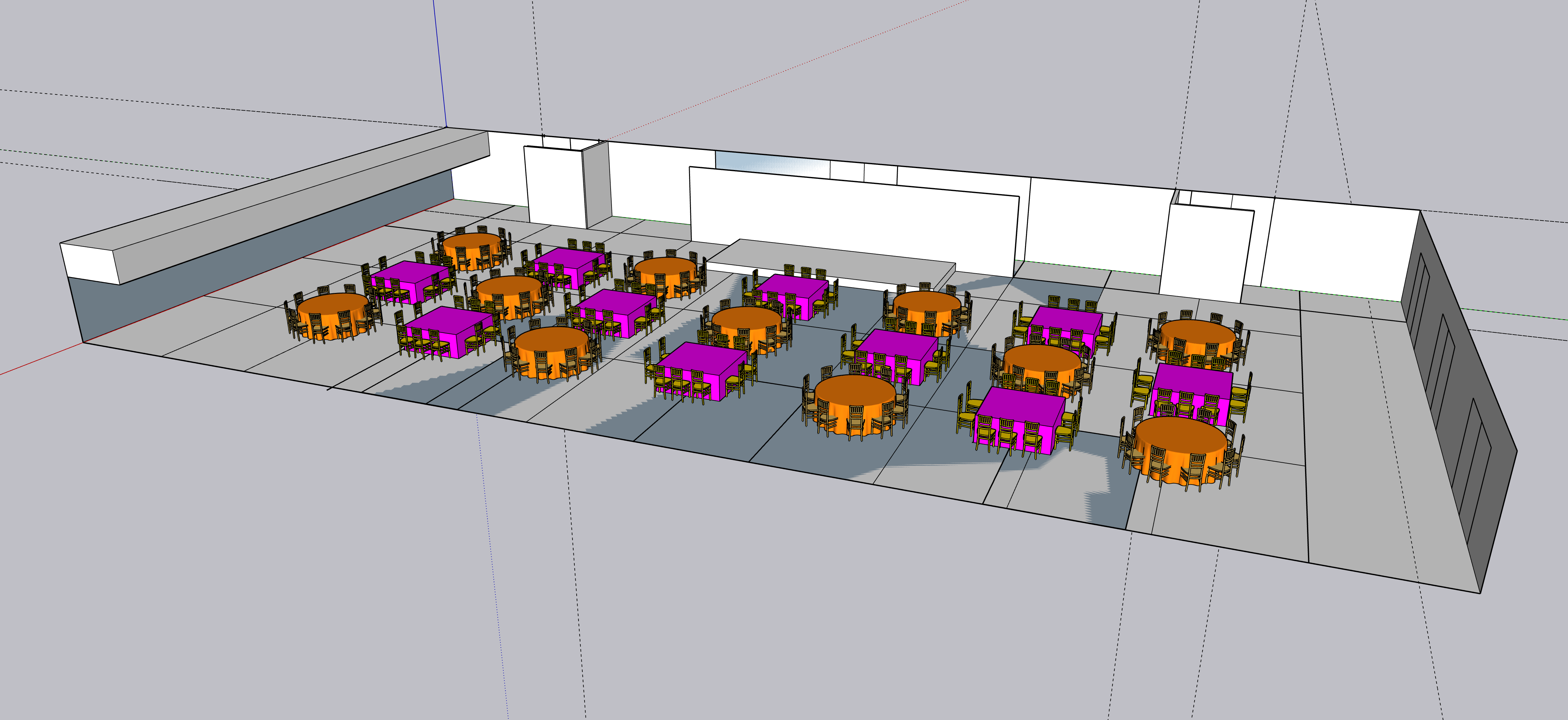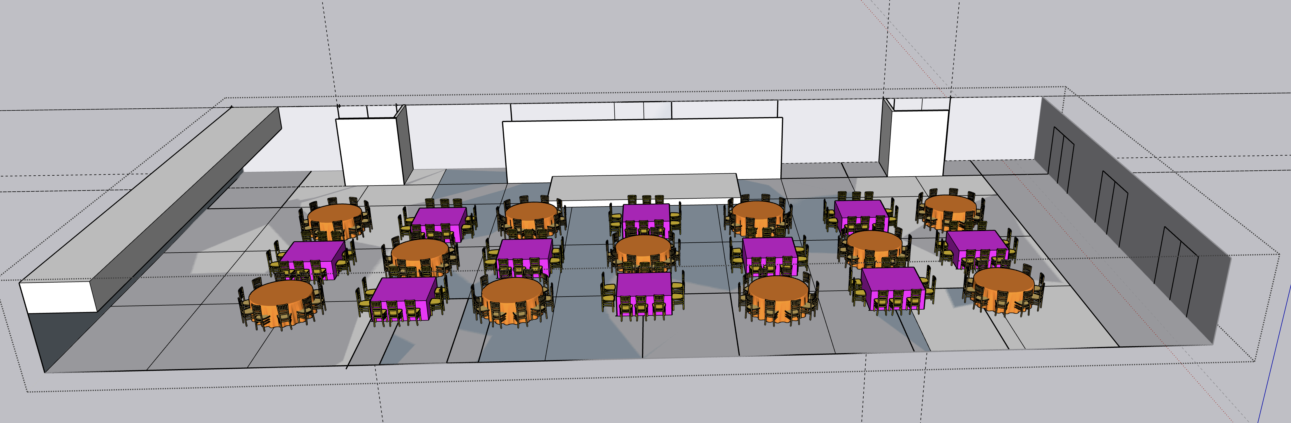 exterior shot the room is 36m x 18m the theme is an indian wedding with round and square tables of 10 guests