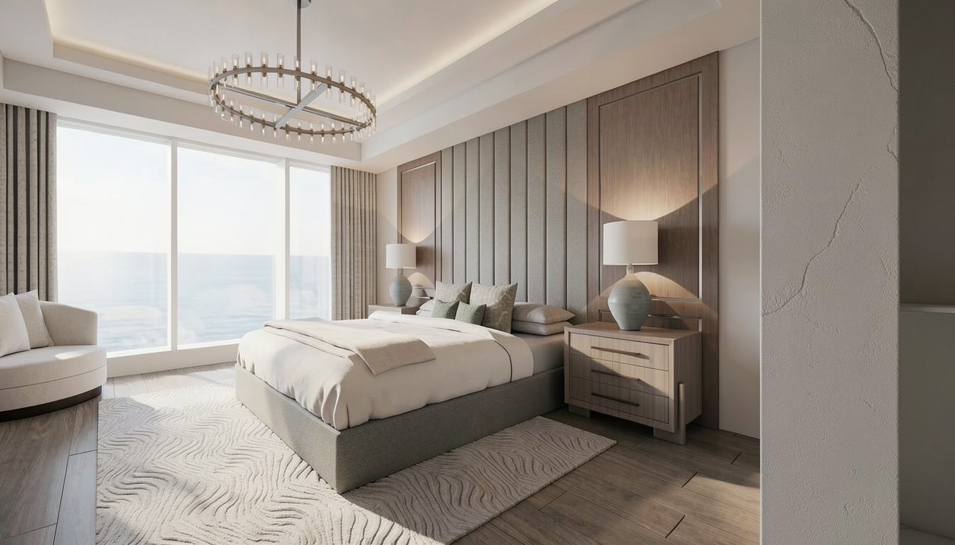 professional architectural photography of an upscale spanish tapas restaurant banquette seating area eye level perspective angled view along continuous banquette warm intimate hospitality atmosphere custom upholstered banquette in rich camel brown leather with realistic natural grain subtle creases stitching detail and slight tonal variation between panels softly worn leather texture with authentic reflectivity decorative upholstered top rail in marbled fabric with intricate pattern realistic woven textile texture and depth deep burgundy painted plaster wall with subtle hand applied finish variation matte sheen and realistic wall texture mounted polished brass bull head ring hardware evenly spaced across wall highly reflective brass material with realistic highlights subtle patina and natural imperfections dark stained wood tables with visible wood grain slight wear at edges and soft satin finish sculptural pedestal and caf tables with realistic metal patina oxidation and material variation fully upholstered dining chairs in cream boucle fabric with highly detailed woven texture soft fibers subtle shadowing and realistic compression at seat cushion exposed brick wall with authentic mortar joints material variation and realistic depth dark flooring with subtle reflectivity and natural wear patterns warm ambient restaurant lighting soft directional lighting from above realistic shadow falloff indirect bounce light from surrounding materials natural light entering from window with realistic exposure balance shot on full frame camera 50mm lens shallow depth of field professional interior photography hdr ray tracing global illumination ambient occlusion physically accurate materials ultra photorealistic architectural digest style dezeen style luxury hospitality photography extremely realistic materials micro imperfections subtle wear natural variation 8k resolution floor is a dark crarcoalstained concrete the chairs are a tan textured fabric there is a soft amber sunset glow illuminating the room evenly light from the ceiling brightens the vibe the paint is a more berry purple red the kitchen is all stainless steel high end kitchen equipment the arches are not windows they have wall paper and sconce wall lights