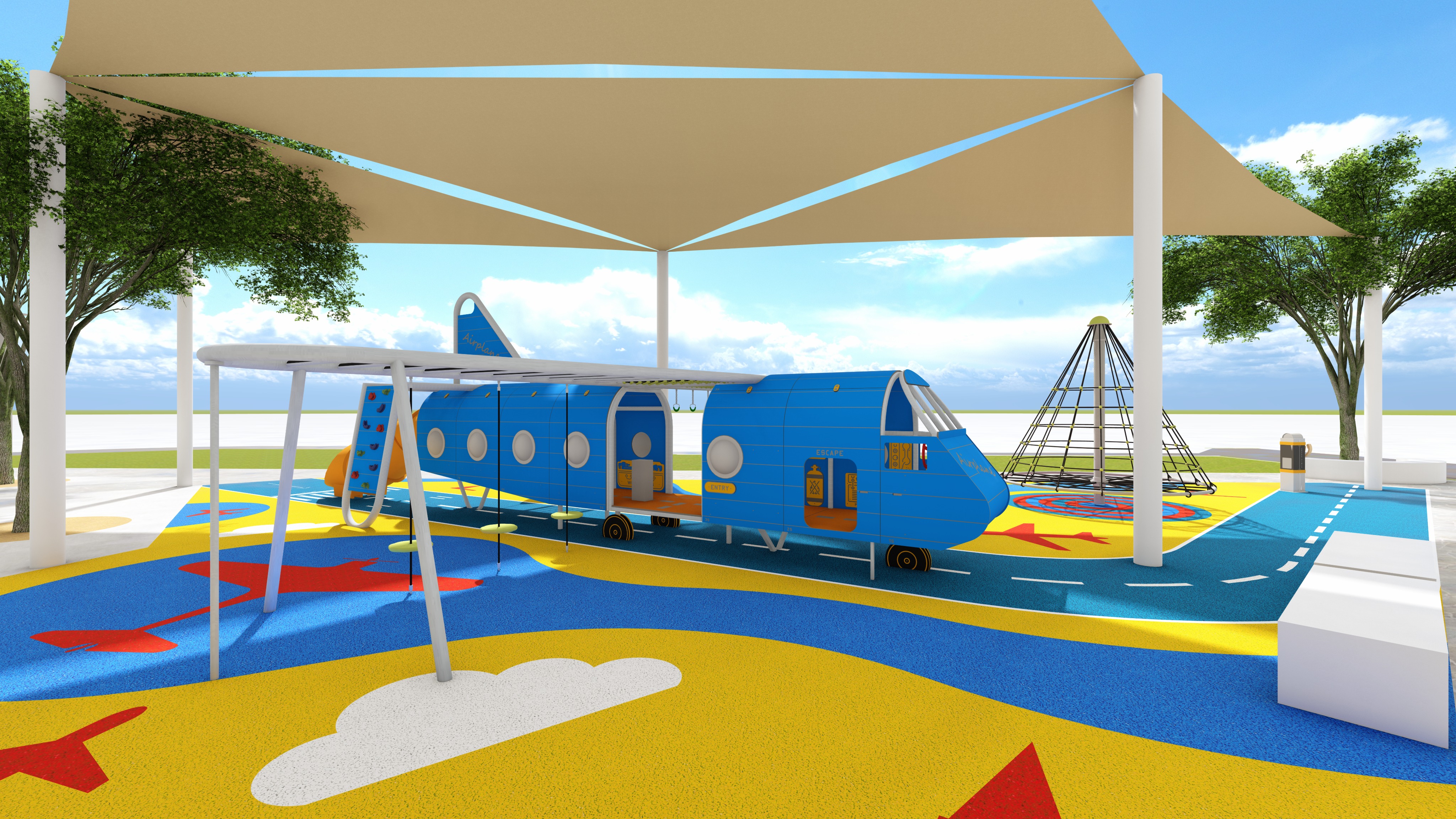 ultra realistic architectural playground render strictly preserve the exact playground equipment design do not modify shapes do not redesign structures do not alter layout maintain original proportions and materials enhance lighting realism and integrate realistic urban context in the background natural trees subtle distant buildings believable sky physically accurate daylight with consistent shadow direction environmental bounce light and natural shadow gradients naturally interacting with the equipment in realistic ways every playground element being actively used authentic body mechanics and weight distribution varied dynamic with background slightly softened professional architectural photography style balanced daylight high detail 8k clarity