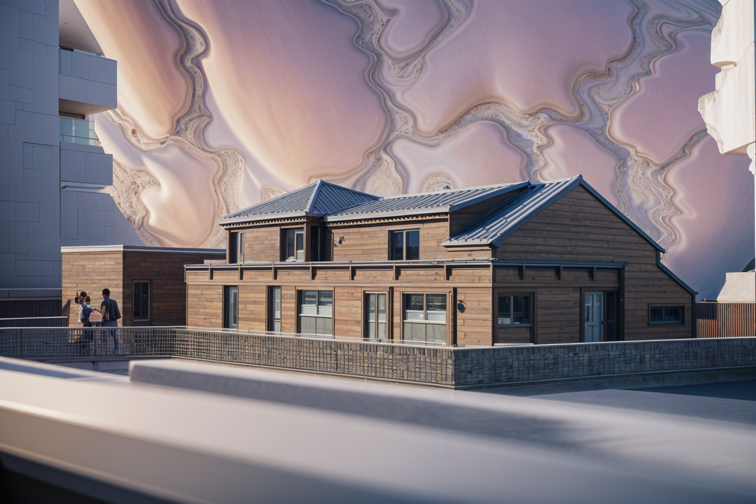 generate a visual of this house my architect has designed the windows are black aluminium the black grey areas of wall are black vertical timber cladding the grey walls are grey bricks with a concrete band around the buildings between storeys ther is also a gabian wall at the lower level in areas add some wild planting domestic in style by stylish and classy and add landscaping and trees in the backhround and foregroud thre are no houses or other built forms nearby just trees provide trees to ouside of site and show grey briick and provide mjore wild planting to rer garden do not chnage angles or the house design