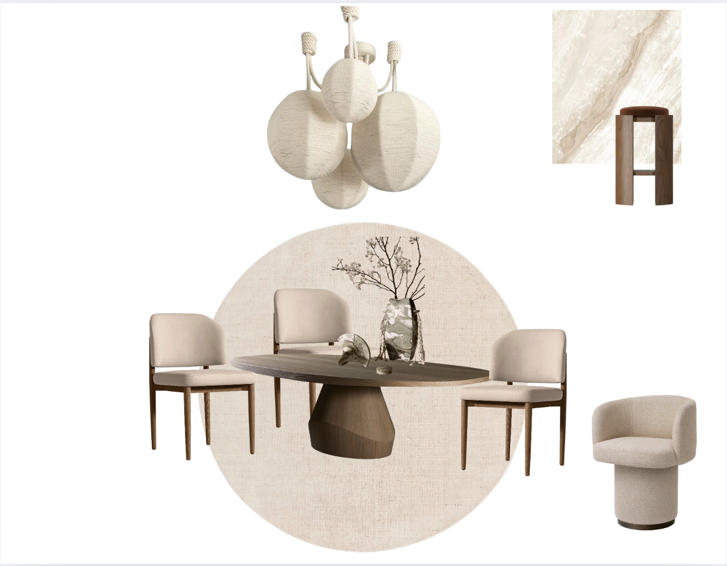 interior shot make this a dining room with all windows on the right side the table is oval use all the same colors and wood tones the walls are white