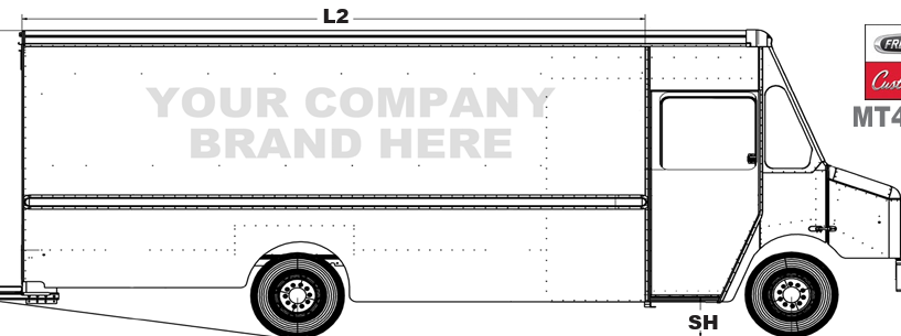 create a luxury mobile showroom built inside a freightliner mt55 step van used by a design build firm branding on the vehicle must prominently display 360 contracting design modern luxe cabinets passenger side of the truck should feature a full glass showroom wall with black steel frames allowing people to see the cabinet displays inside driver side should be solid matte black with large elegant gold lettering that reads 360 contracting design below it smaller text modern luxe cabinets rear of the vehicle should include a fold down deck that becomes an outdoor consultation space with a quartz countertop bar and two stools interior of the truck should be a luxury cabinetry showroom including cabinet door display wall drawer construction demonstration pull out storage displays vertical quartz sample rack small design consultation desk interior lighting should be warm led showroom lighting style should feel like a high end kitchen design studio on wheels