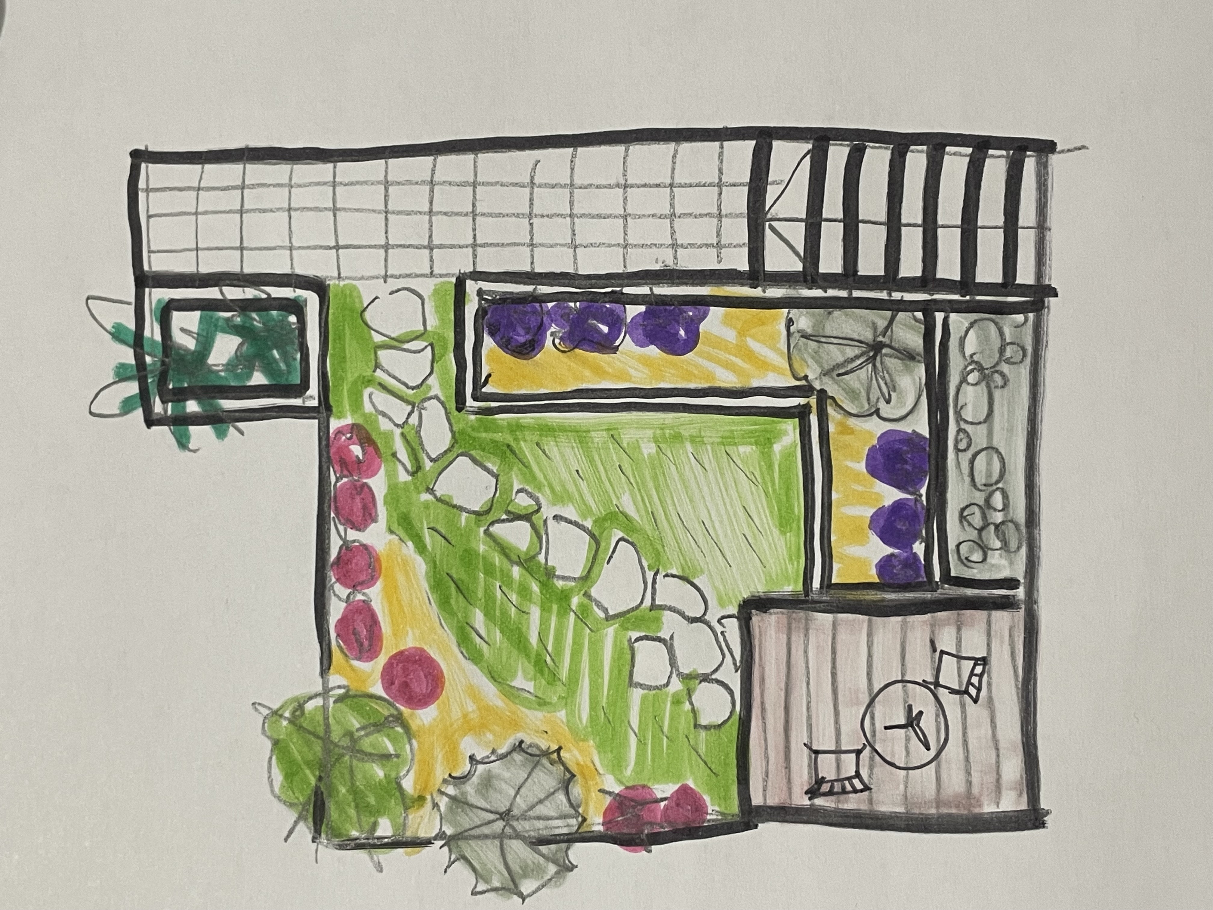 convert this floor plan into a realistic isometric 3d view of a full house show the space from an elevated angle with furniture walls and details visible be photorealistic the colors represent different plant types each color represents a different material use the same furniture as shows on the plan do not change the orientation of the floorplan