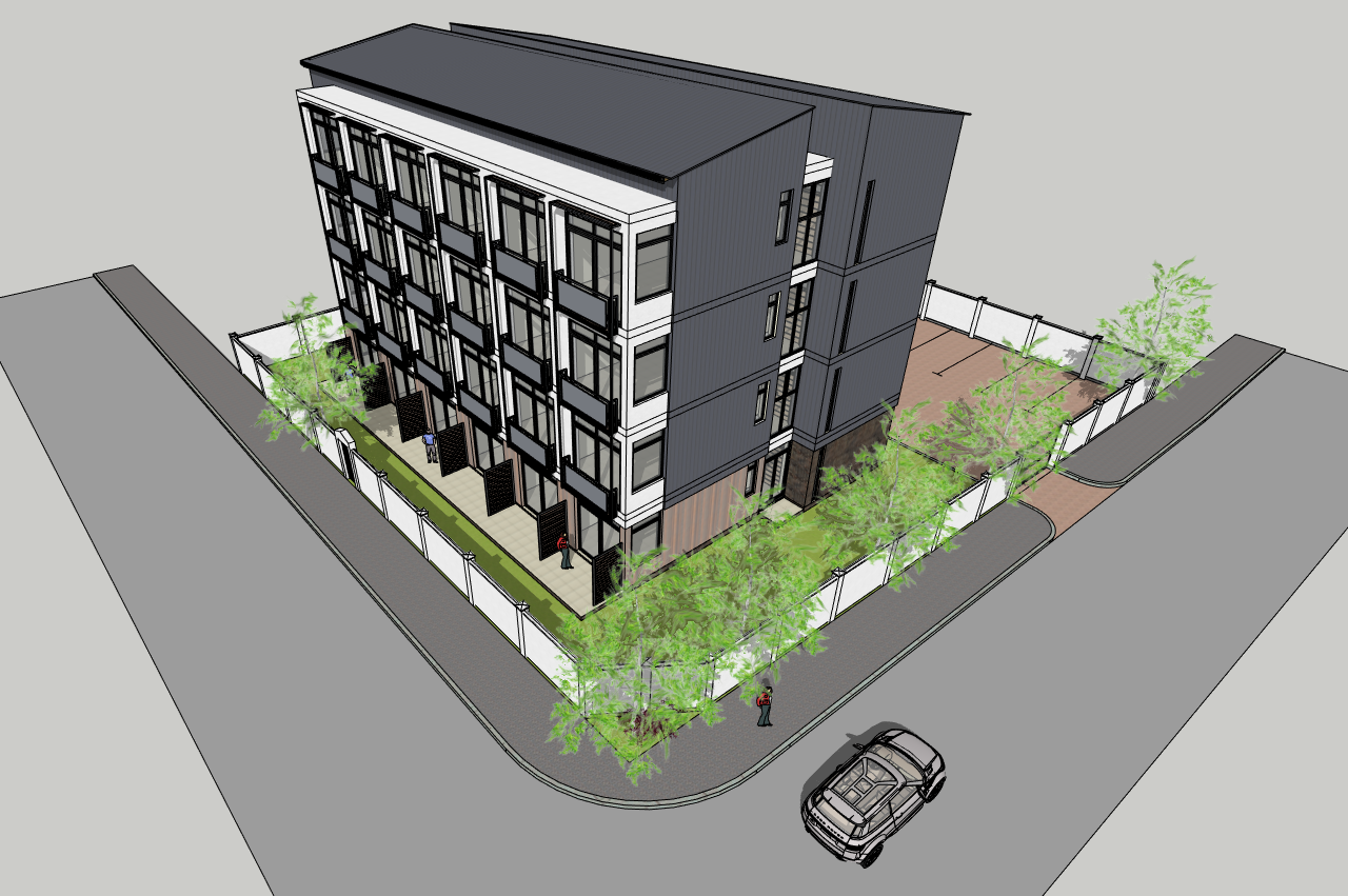 aerial shot a modern apartment building in a suburb of cape town with a warm sunny day render some clouds in the sky and a few seagulls flying overhead architecture