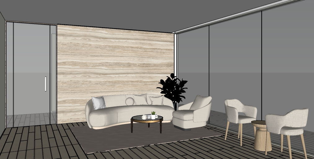 create ultra realistic images without changing any structure shape design or materials do not resize jpegs beige wood vinyl flooring plain off white walls beige wall panels add terace view in the right windows seamless window and flat ceiling