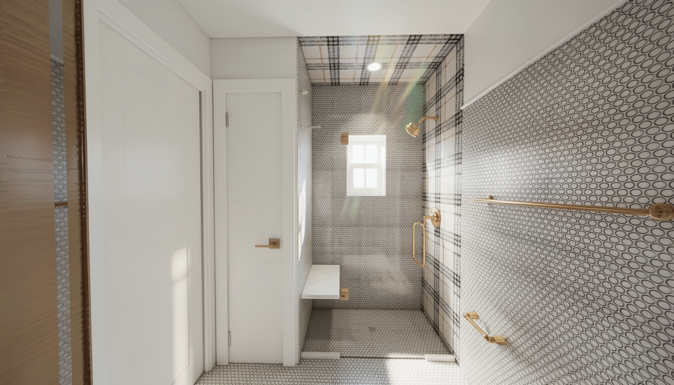 make only the floating stone bench in the shower a light grey stone material