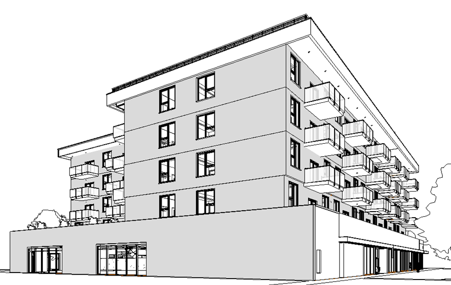modernist exterior shot brick on ground and the rest is metal panel architecture