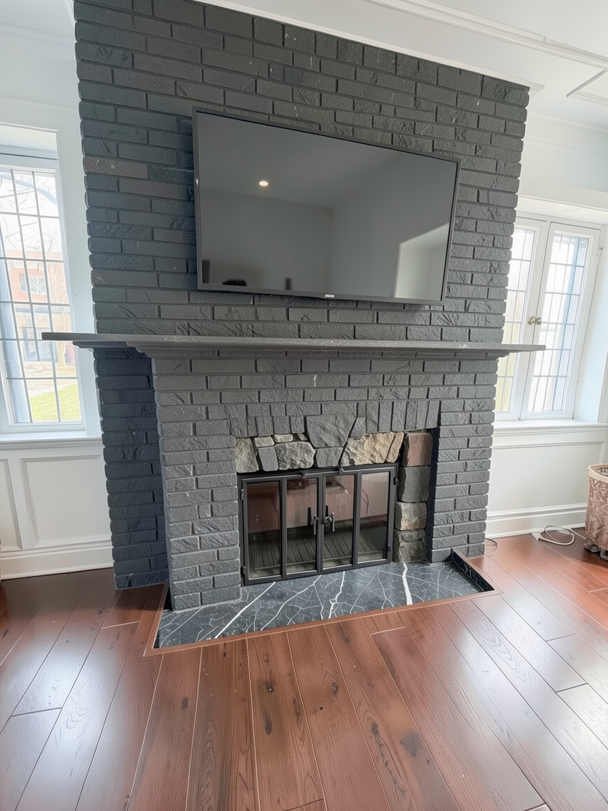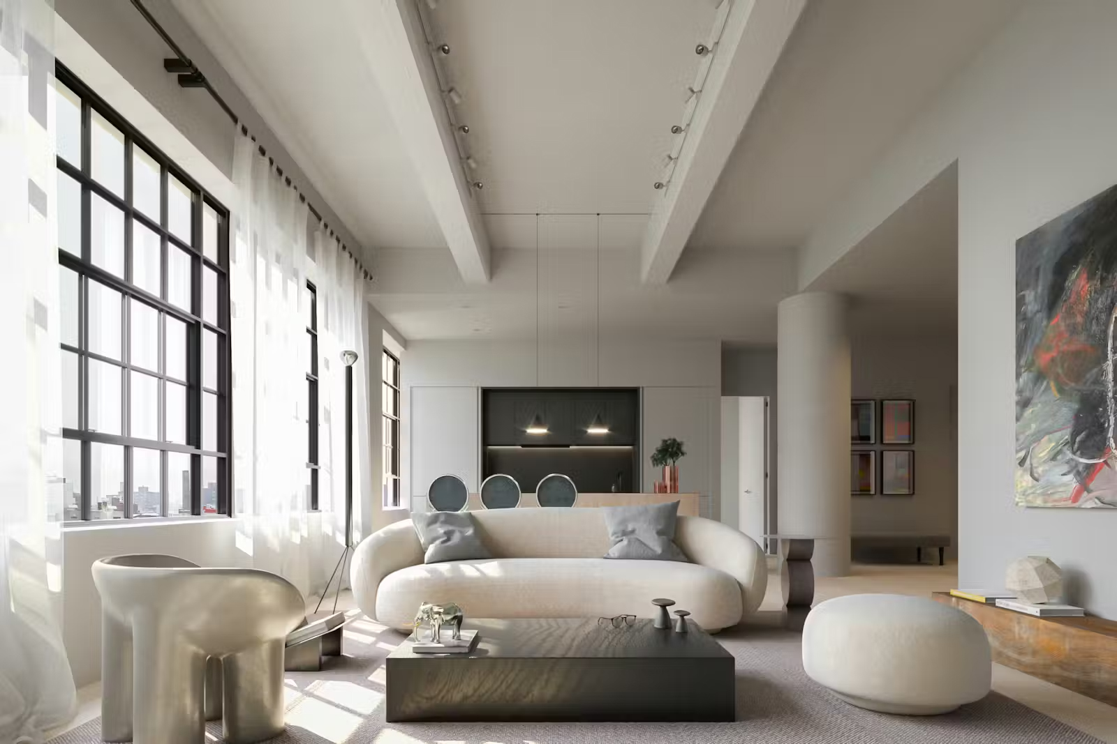 do not change anything about the image except remove the kitchen island stools the vase flowers on the kitchen island the side table next to the sofa and the knick knacks on the table