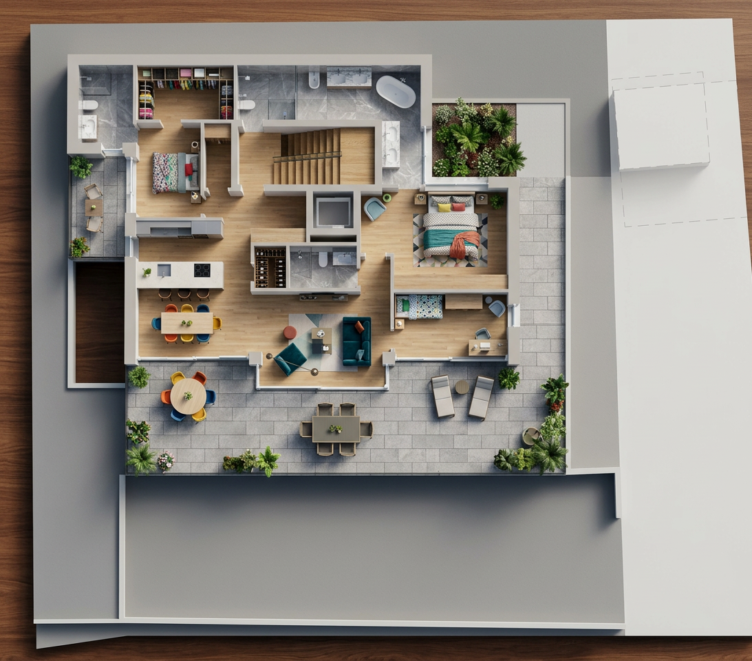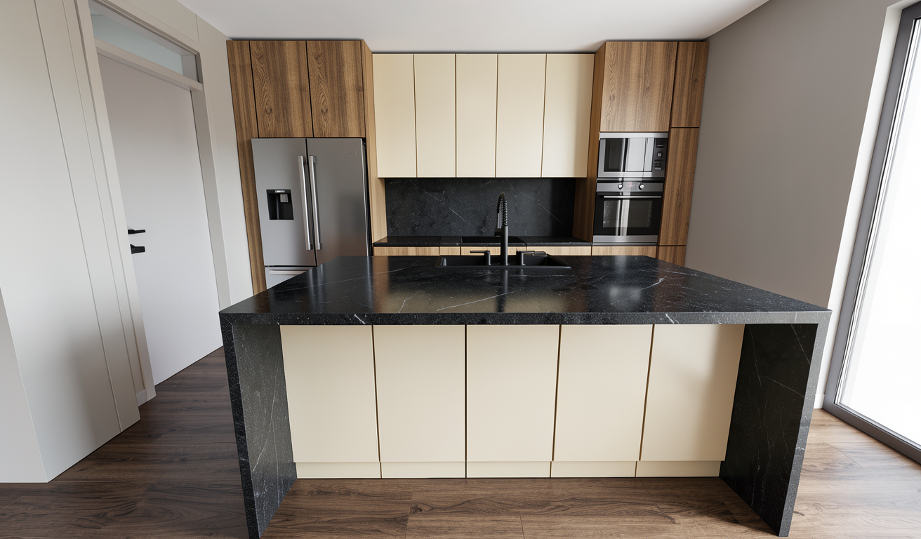 put some modern accessories and make it look realistic change the wood texture from the kitchen to oak wood texture