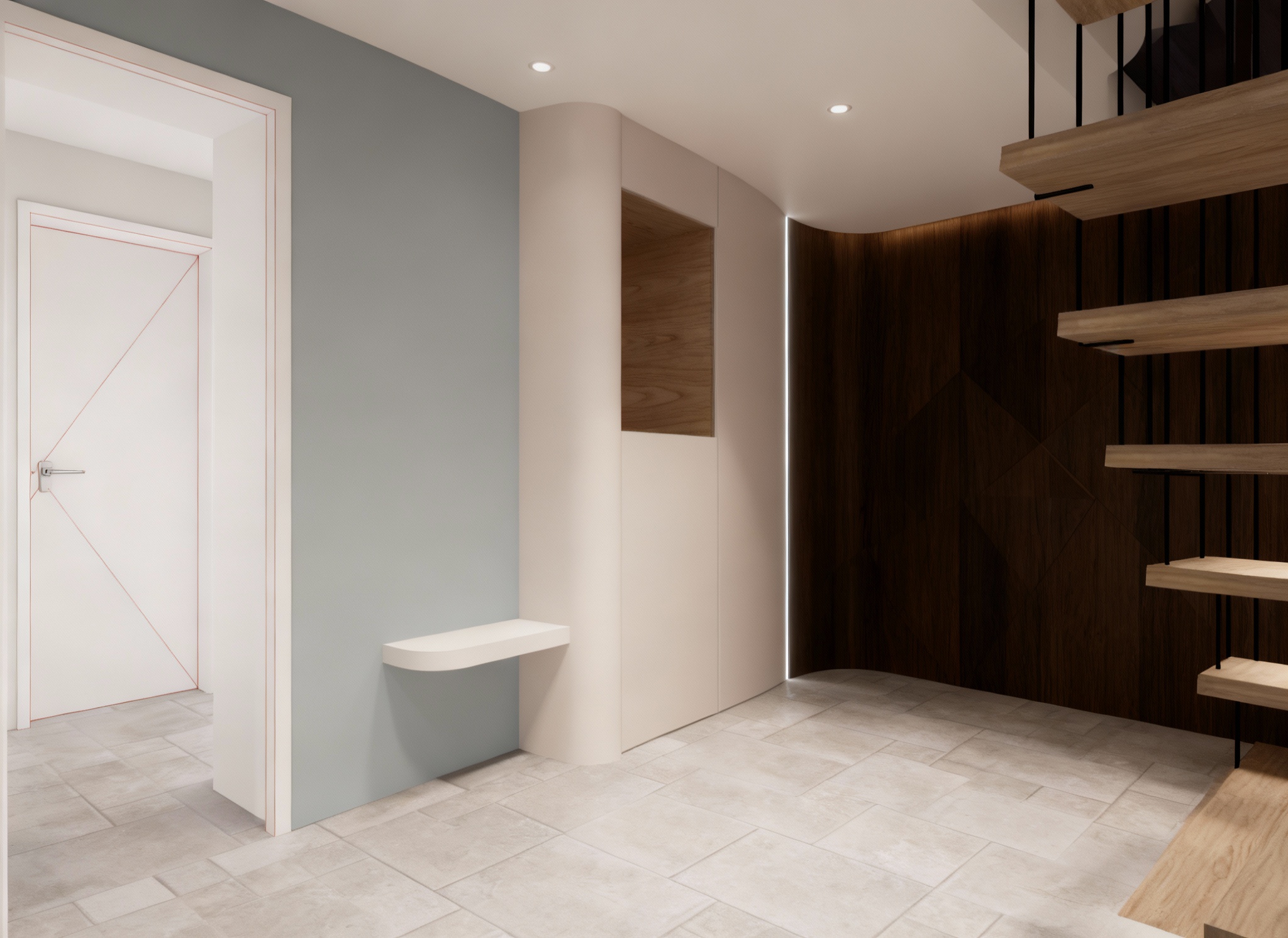 render the building in this image with soft textures the roof is a black standing seam roof the walls are light wood like a cabin render the image so it architectural dimension overlay make it look like a technical sketch add trees and a blue sky with clouds in the background and smoothen the topography and cliff make the overall render look softer and more pastel