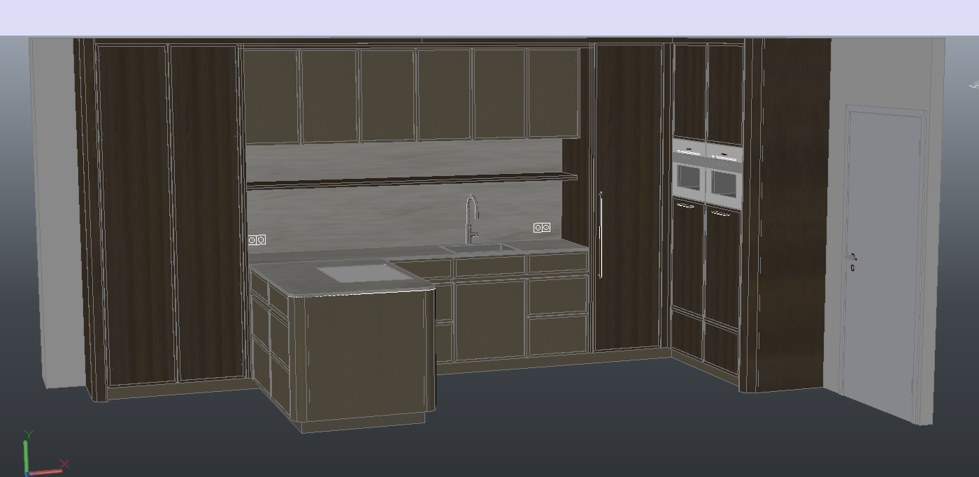 create a high quality photorealistic render of a modern kitchen based on the provided imos ix model add a natural oak wooden plank floor with visible grain and realistic texture horizontal laid in a linear pattern the ceiling should be clean white with evenly distributed recessed spotlights providing soft warm illumination in the niche srompt helving integrate led lighting within the wooden plank that emits light both upwards and downwards creating a subtle ambient glow and highlighting the niche area not in the top only the shelf style the kitchen with realistic accessories to bring the space to life include items such as cutting boards a coffee machine kitchen utensils glassware plants and small decorative elements ensure the styling feels natural and lived in not staged use soft natural daylight combined with the artificial lighting to create a balanced inviting atmosphere emphasize realistic materials reflections and shadows for a premium lifelike result leaf the collers materiaals as it is