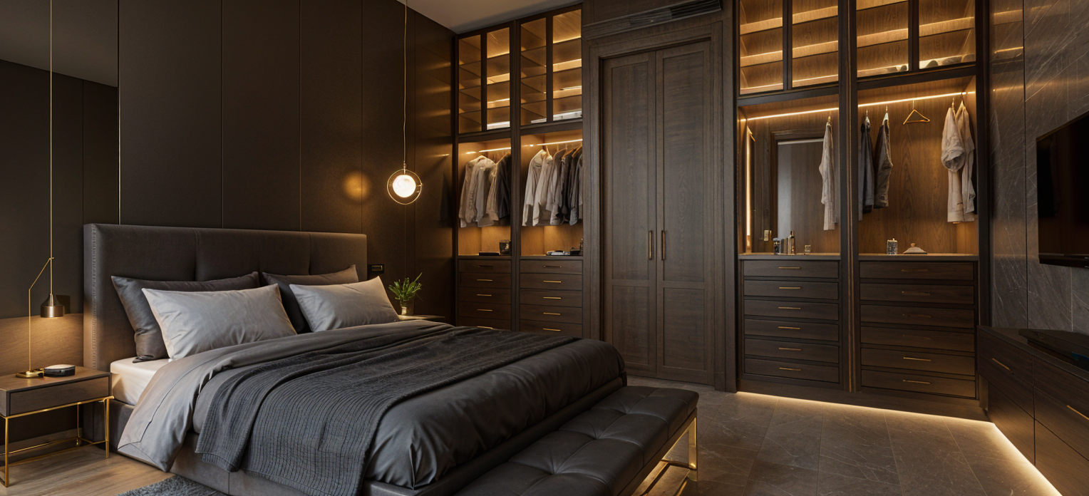 modern two story house with minimalist design featuring a slanted roof the upper fa ade is composed of light gray panels and warm wooden cladding on the right side the lower section features white brickwork large windows with a sleek metal railing add elegance the garage door and main entry are a chic black use soft ambient lighting for a serene and contemporary atmosphere with the sky painted in shades of sunset orange and pink incorporate small green plants by the entrance and a wooden side fence for contrast