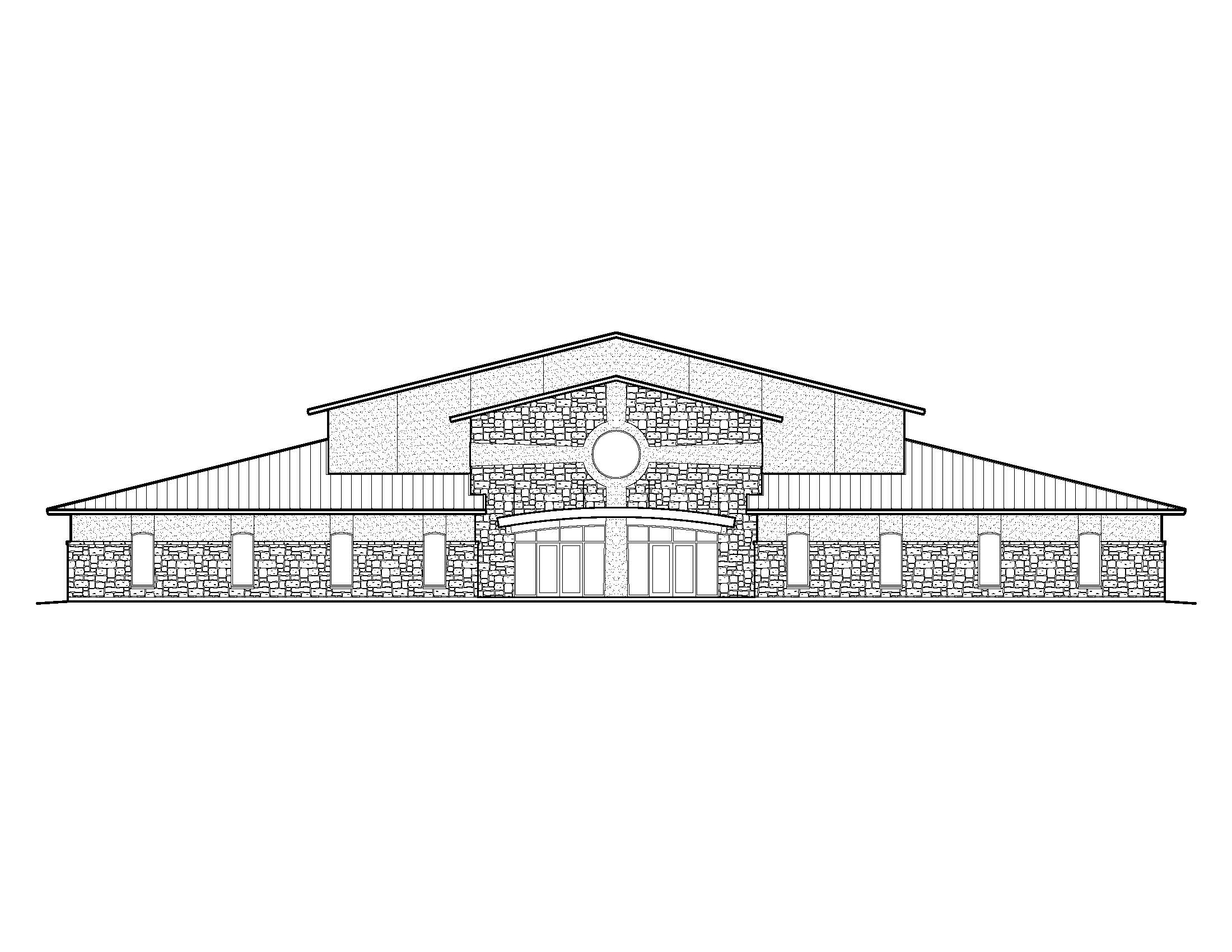 parking lot with automobiles people walking to the building and paved entry with landscaping to soften appearance from eye level