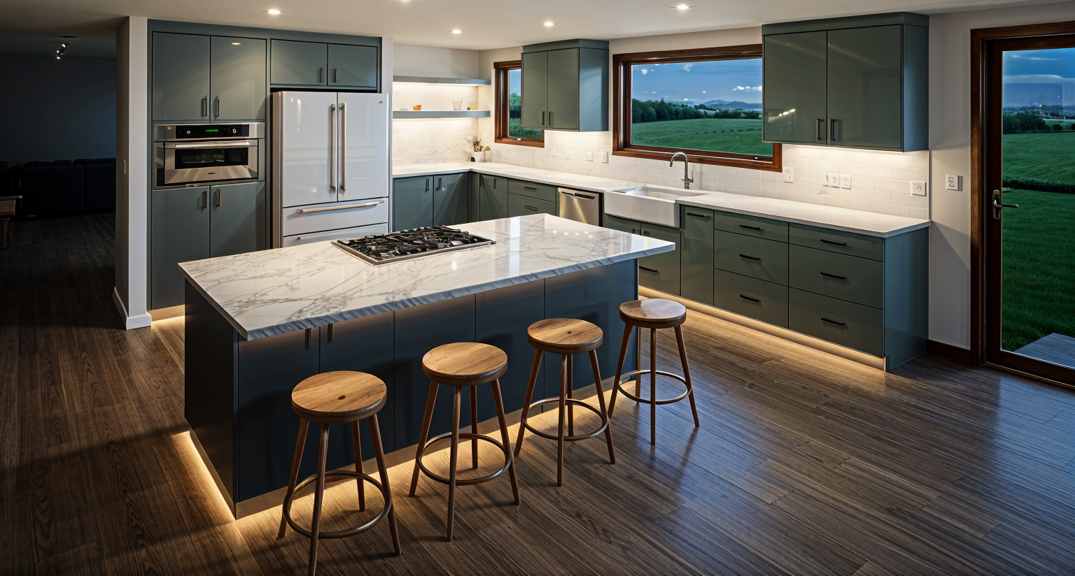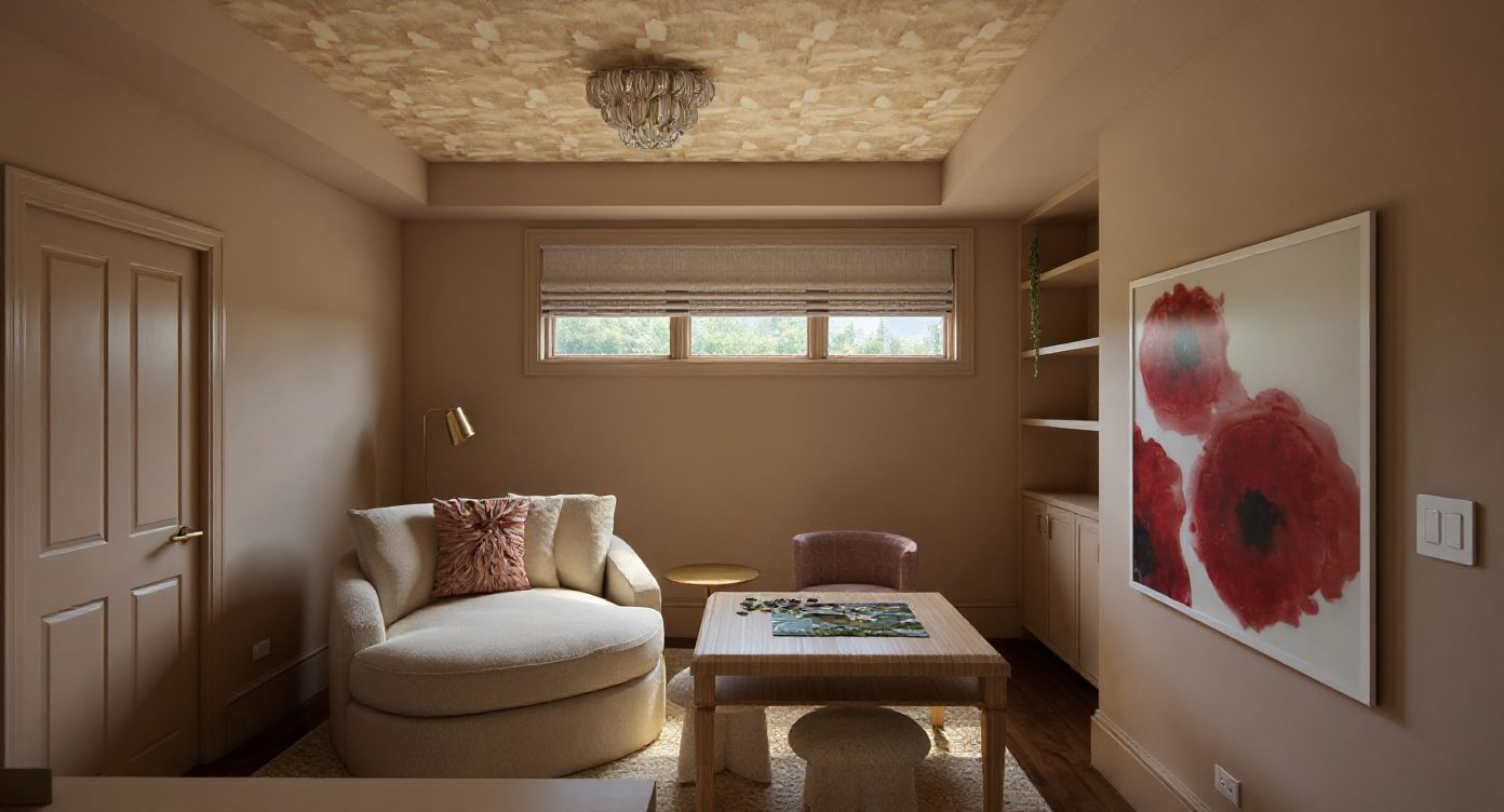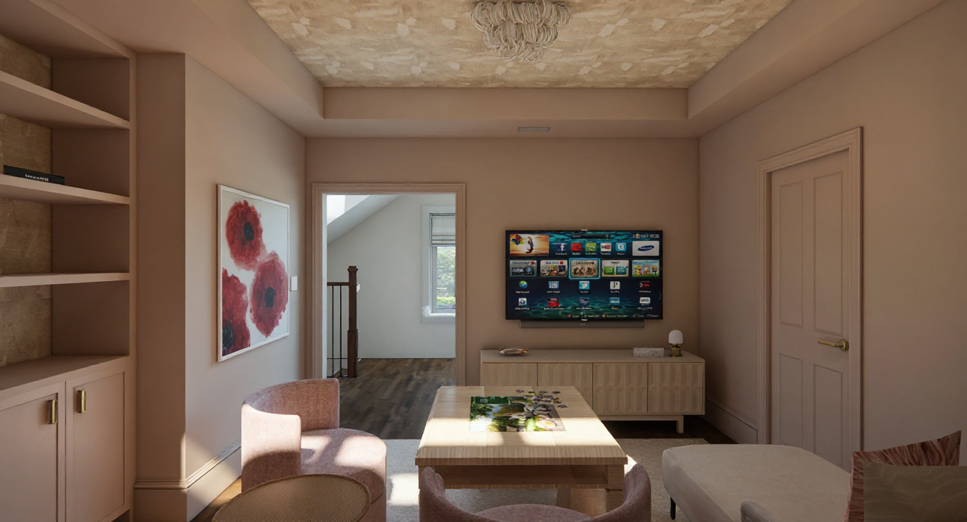 photorealistic clear day and skies landscaping around the front of the building parking spaces in front of the sidewalk