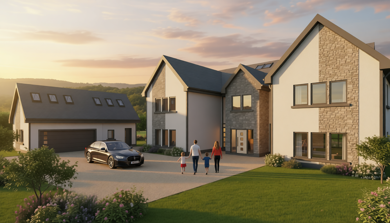 enhance image quality only upscale to 4k resolution preserve the original design exactly as is no changes to geometry materials lighting colors textures composition or camera angle except for the driveway surface change the driveway material to a realistic gravel correctly scaled and naturally integrated do not alter the driveway layout size edges or surrounding elements keep all architectural and landscape elements unchanged improve sharpness clarity and detail only photorealistic clean high resolution output