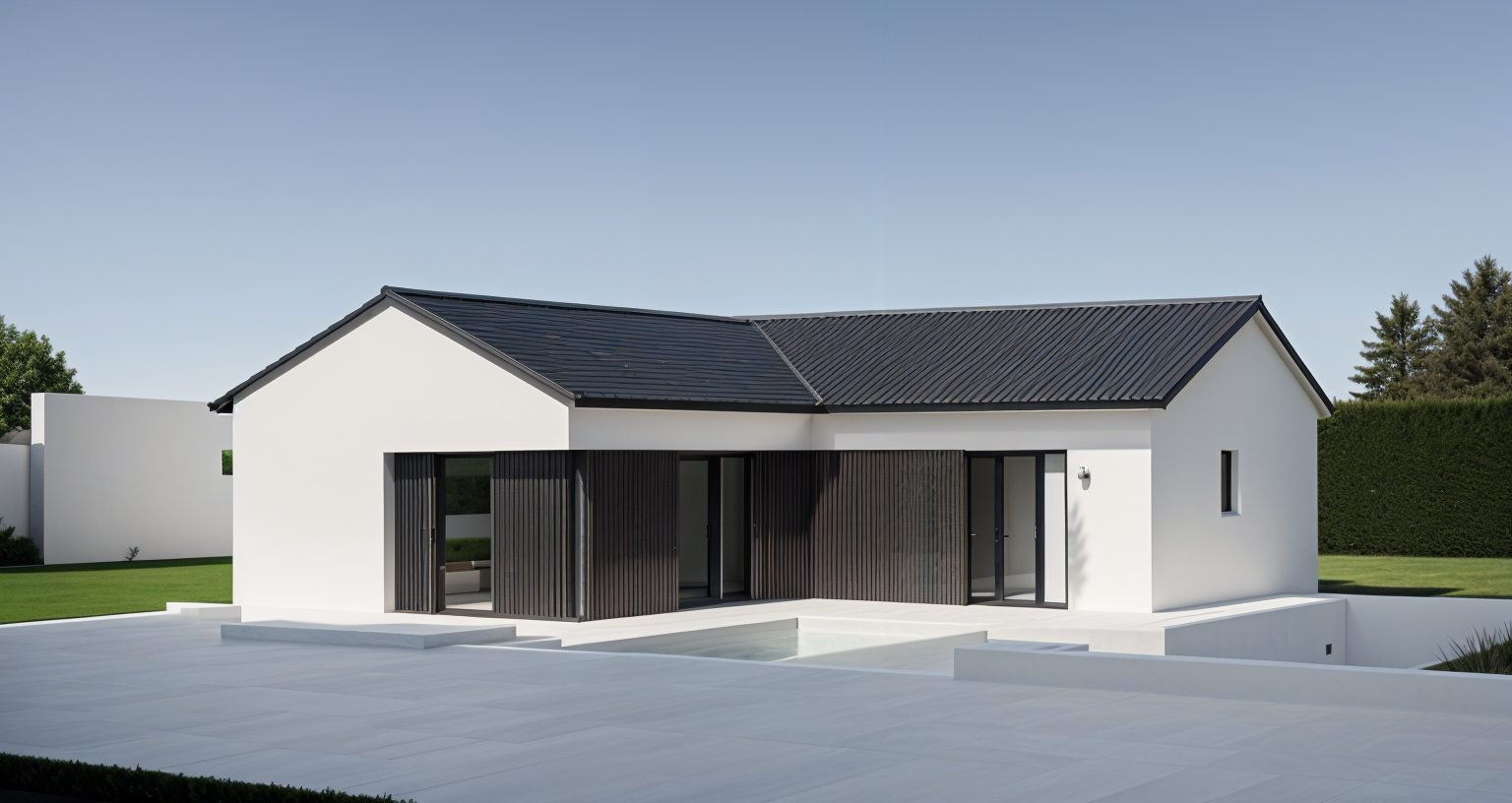 zaha hadid exterior shot render an architectural design showcasing a modern circular building with a central tree surrounded by curved structures use a soft natural color palette light beige for the building green accents for the trees and gentle blue for the sky incorporate shadows for depth and realism create an inviting tranquil atmosphere with warm sunlight and cool shading architecture