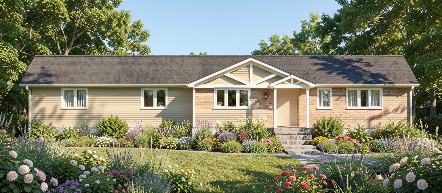 all windows in the front as pictured siding to be vinyl sunny day with lots of landscaping in front of the house