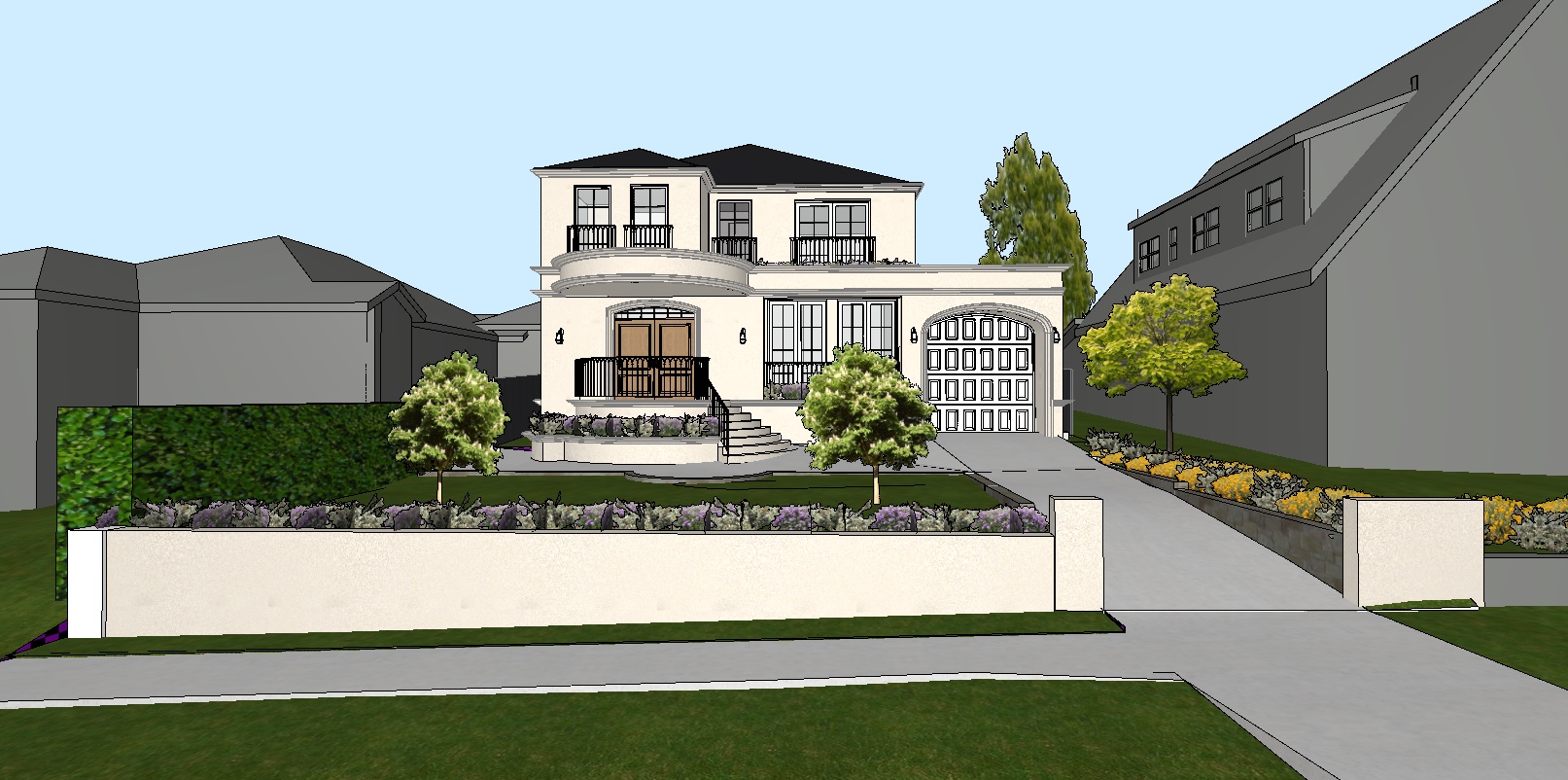 maintain image and only update below change black garage door on the right to white change all window frames to white make plants more realistic