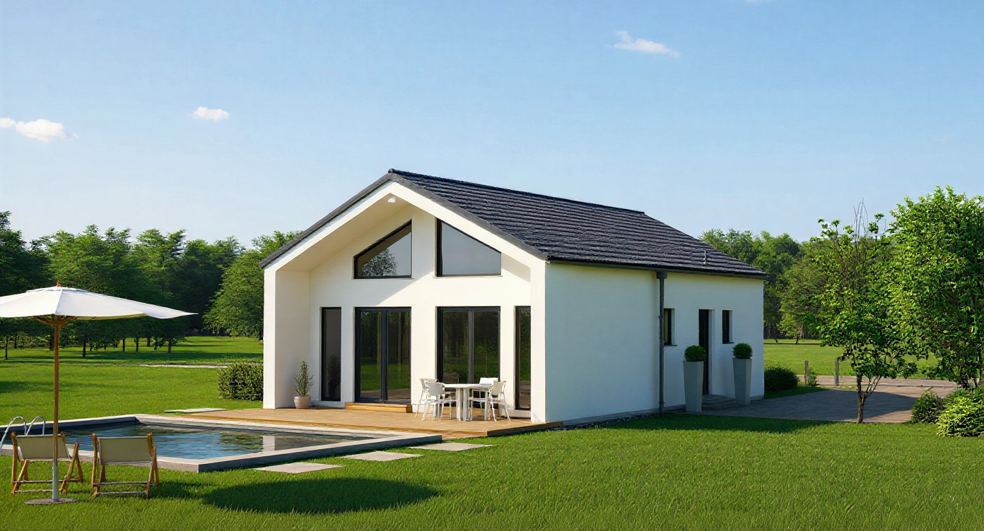 develop a landscaped garden within the fence filled with lush plants and greenery add a clear pathway with integrated pathway lights create a bright ambient daylight setting with natural well defined shadows for depth and realism